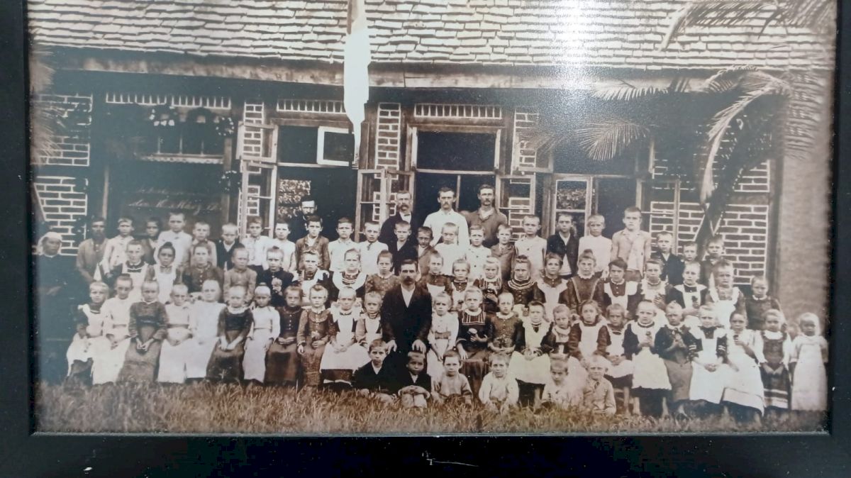 A escola é, na verdade, uma síntese de duas sociedades escolares da localidade, que possivelmente foram implantadas em 1870. A sociedade da Escola “Pommerode I” (atual Rua Leopoldo Blaese) estava localizada na propriedade que pertence a família de Henrique Drews Filho. A sociedade da escola “Pommerode II” (atual Rua Vidal Ferreira) estava localizada ao lado do cemitério da comunidade, na propriedade da família do Sr. Hilbert Zinnke. Eram casas no estilo enxaimel que funcionavam como escola e residência do professor.