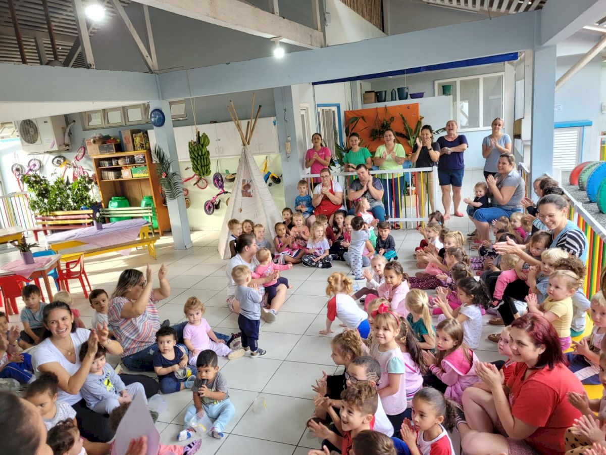 O momento cultural vem sendo desenvolvido mensalmente no CEIM Rosa Borck, ele é potencializado com apresentações das crianças. Sua organização (espaço, horário), possibilita que as crianças das diferentes faixas etárias participem, dando a elas senso de pertencimento.