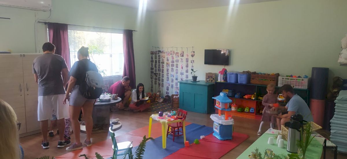 Cada espaço foi organizado com carinho e cuidado para receber a comunidade proporcionando momentos de conexão através das interações e brincadeiras. Pois, acreditamos que a criança aprende o que vivencia, então se os adultos de referencia da criança podem estar juntos, convivendo em harmonia, ela se sentirá segura nesse espaço. E esses encontros se tornam de memórias afetivas de qualidade para todos!