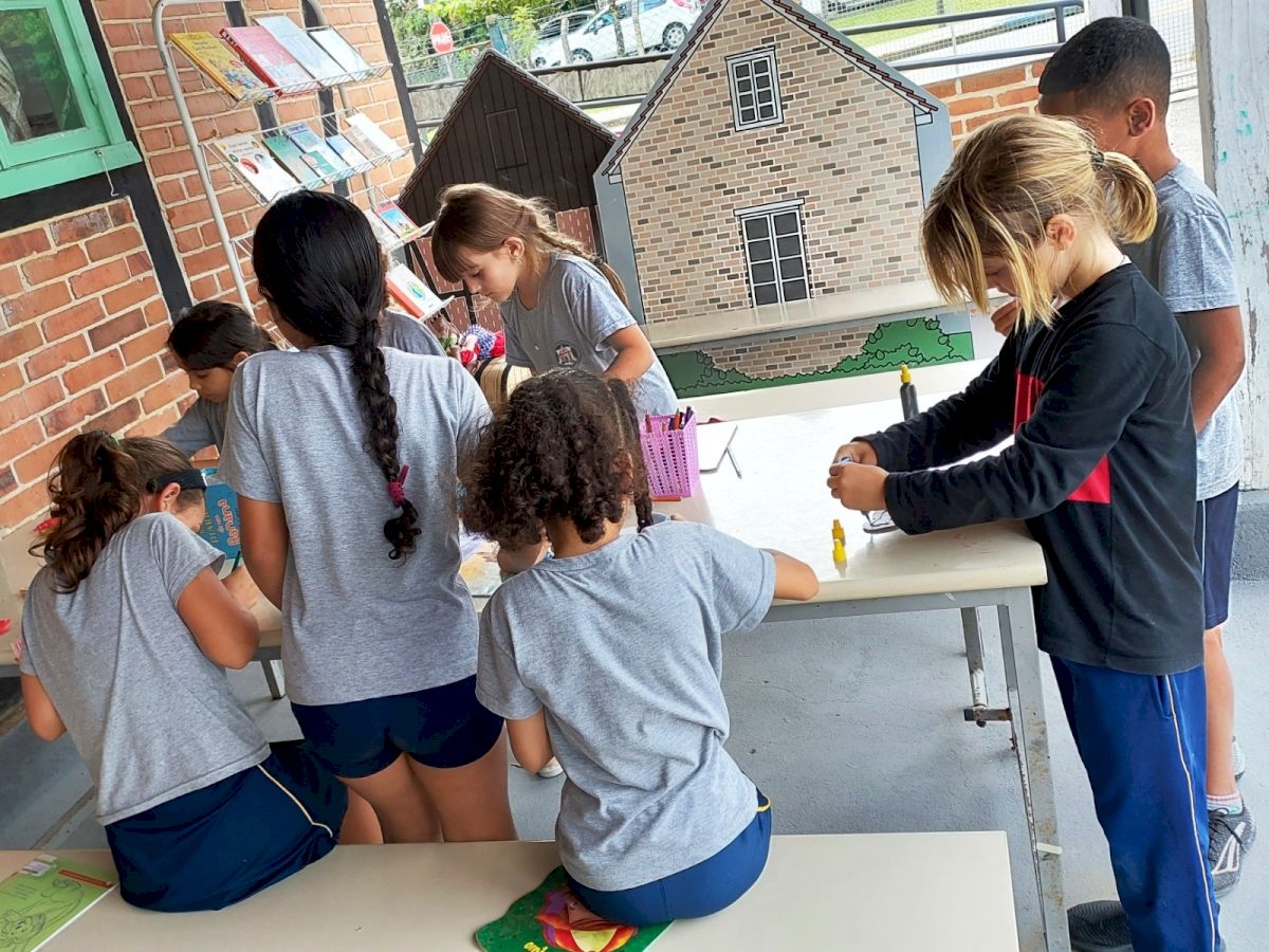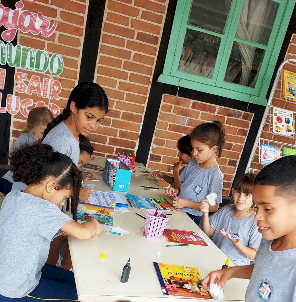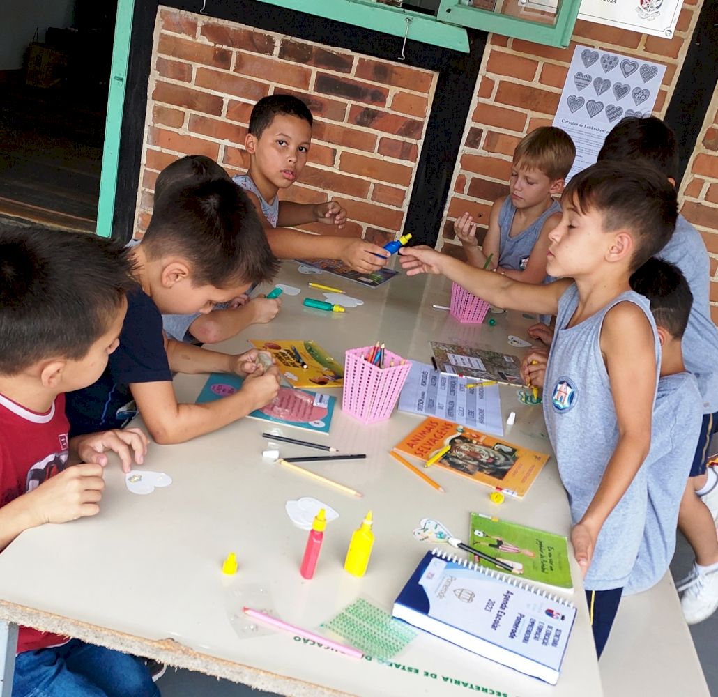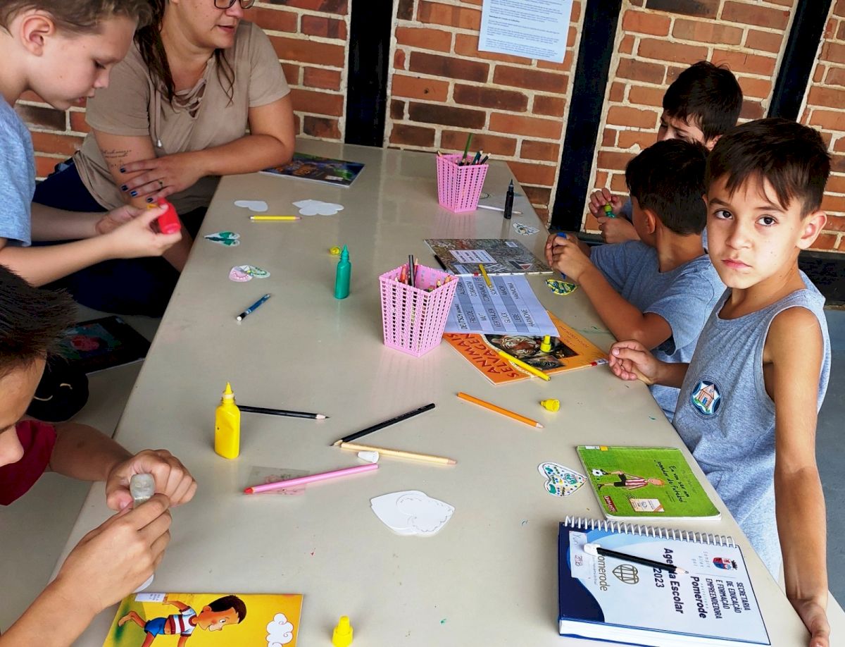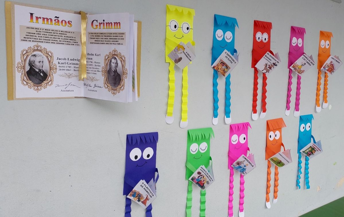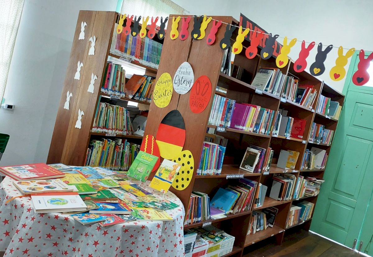 Na Escola Noemi, tivemos uma exposição dos livros de língua alemã que temos no acervo, além de contação de histórias dos Irmãos Grimm, com vários contos de fadas que tem como cenário a Alemanha, como os músicos de Bremen e a sempre encantadora Chapeuzinho Vermelho.