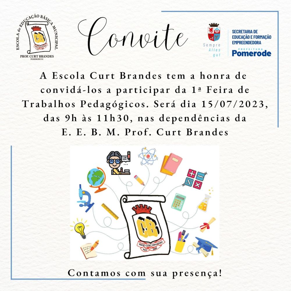 É com muita alegria que a escola Curt Brandes tem a honra de convidá-los a visitar a 1ª Feira de Trabalhos Pedagógicos!