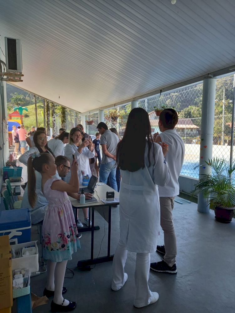 Neste dia ainda houve a participação da Equipe da Unidade de Saúde Edgar Liesenberg contemplando ações do Programa Saúde na Escola – PSE como a vacinação e verificação do esquema vacinal, medição de peso e altura, aferição de pressão, exame de glicemia, orientações de saúde bucal e saúde no geral.