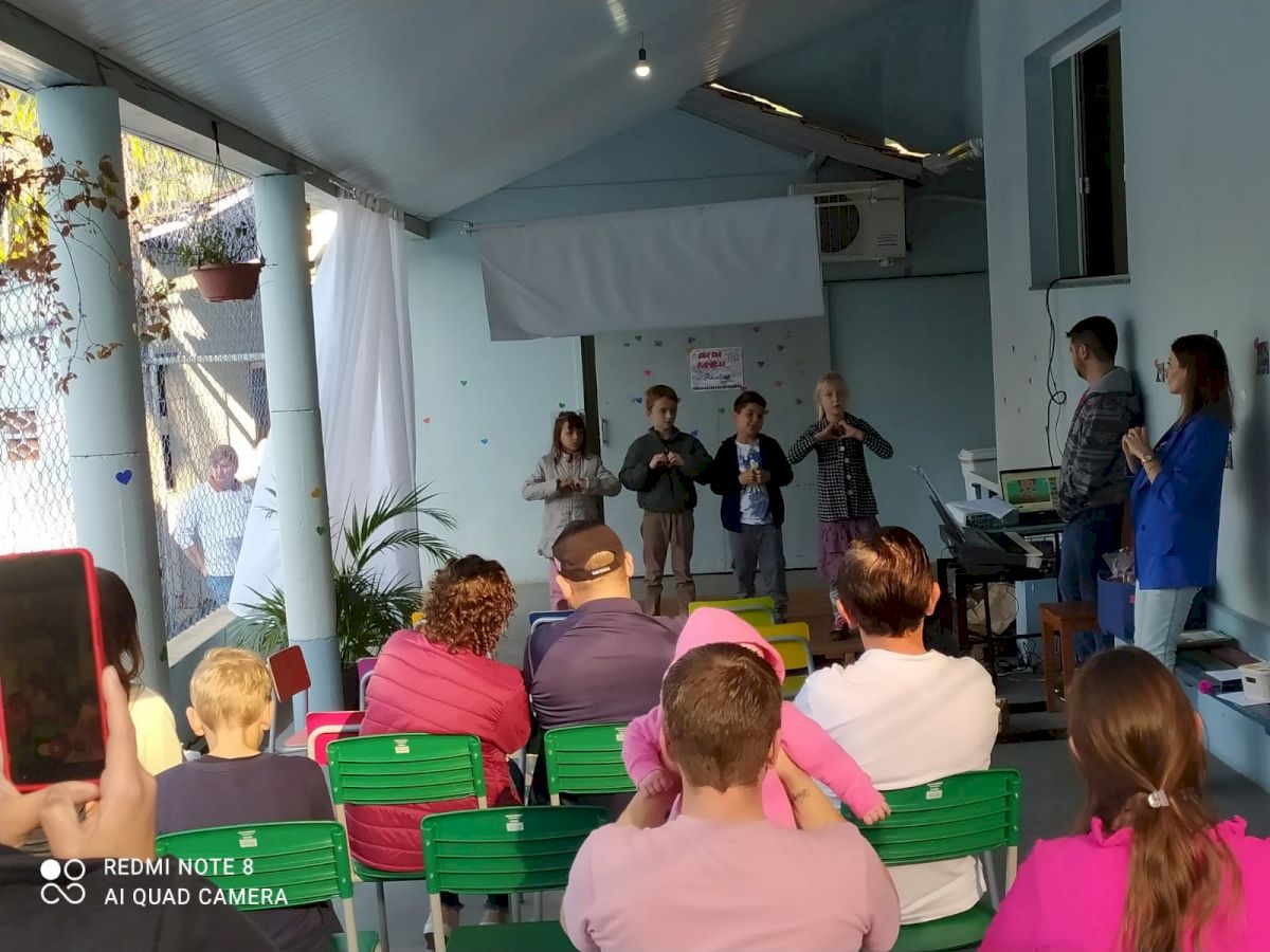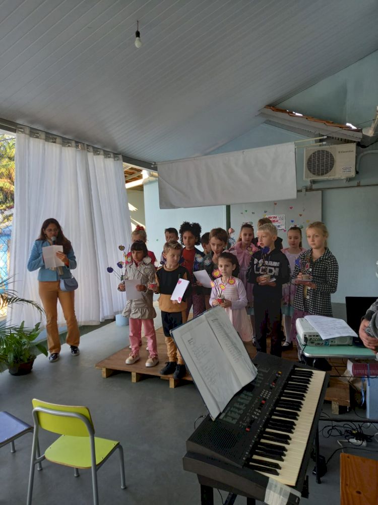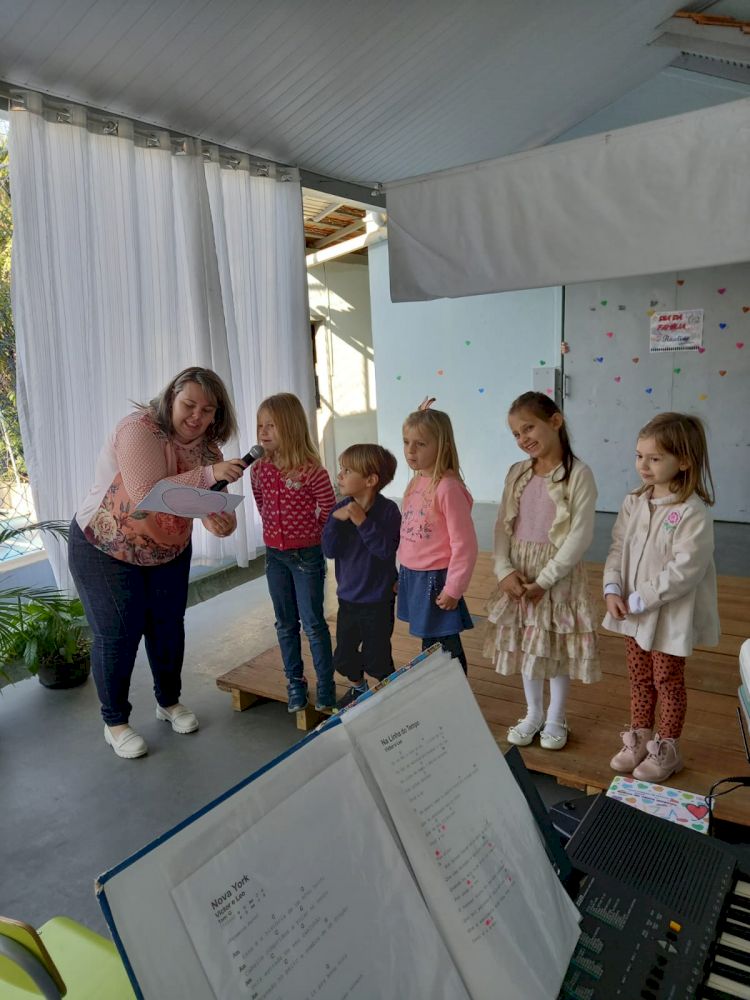 Foi um dia muito especial com muitas apresentações pensadas pelas crianças e relacionadas ao 1º semestre. Também muitos mimos, homenagens de todos estudantes para suas famílias.