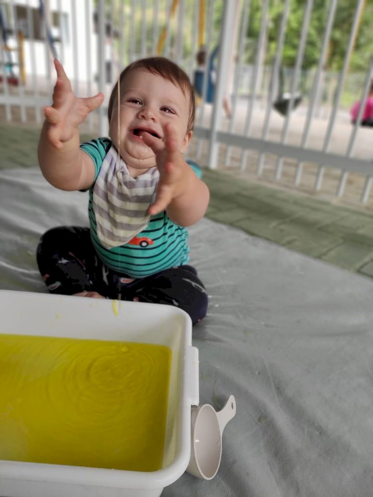 O projeto "A percepção do bebê e o fluído Não-newtoniano" tem como objetivo principal ampliar a percepção tátil do bebê através de diferentes texturas, e apropriação de termos práticos da física e matemática.