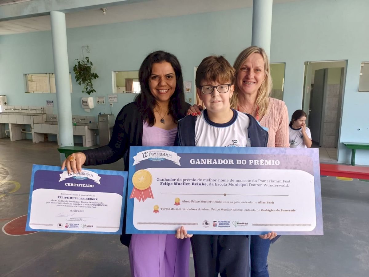 Felipe recebeu o certificado de criador do nome, além de ingressos para levar a família ao Alles Park e passear com seus amigos de sala de aula no Zoo Pomerode!