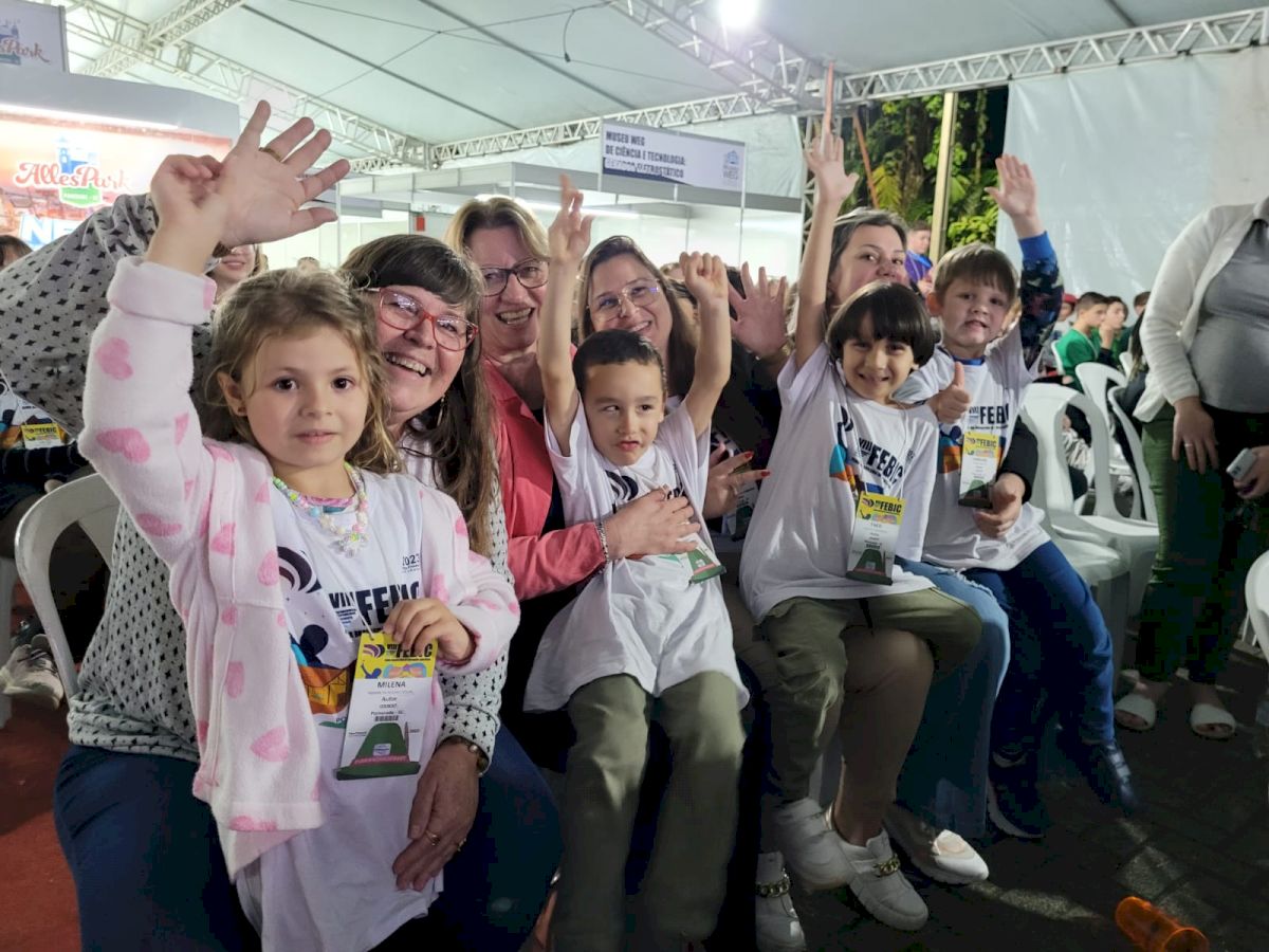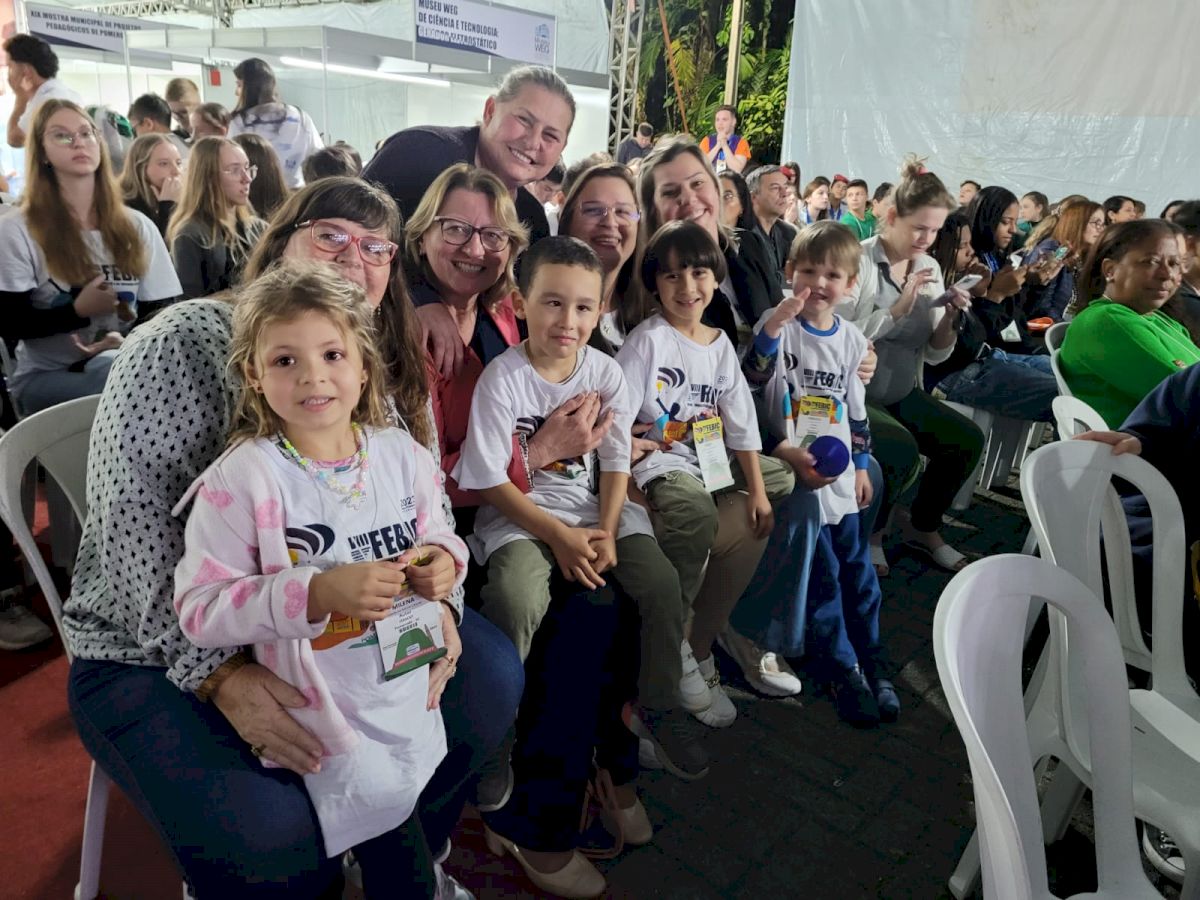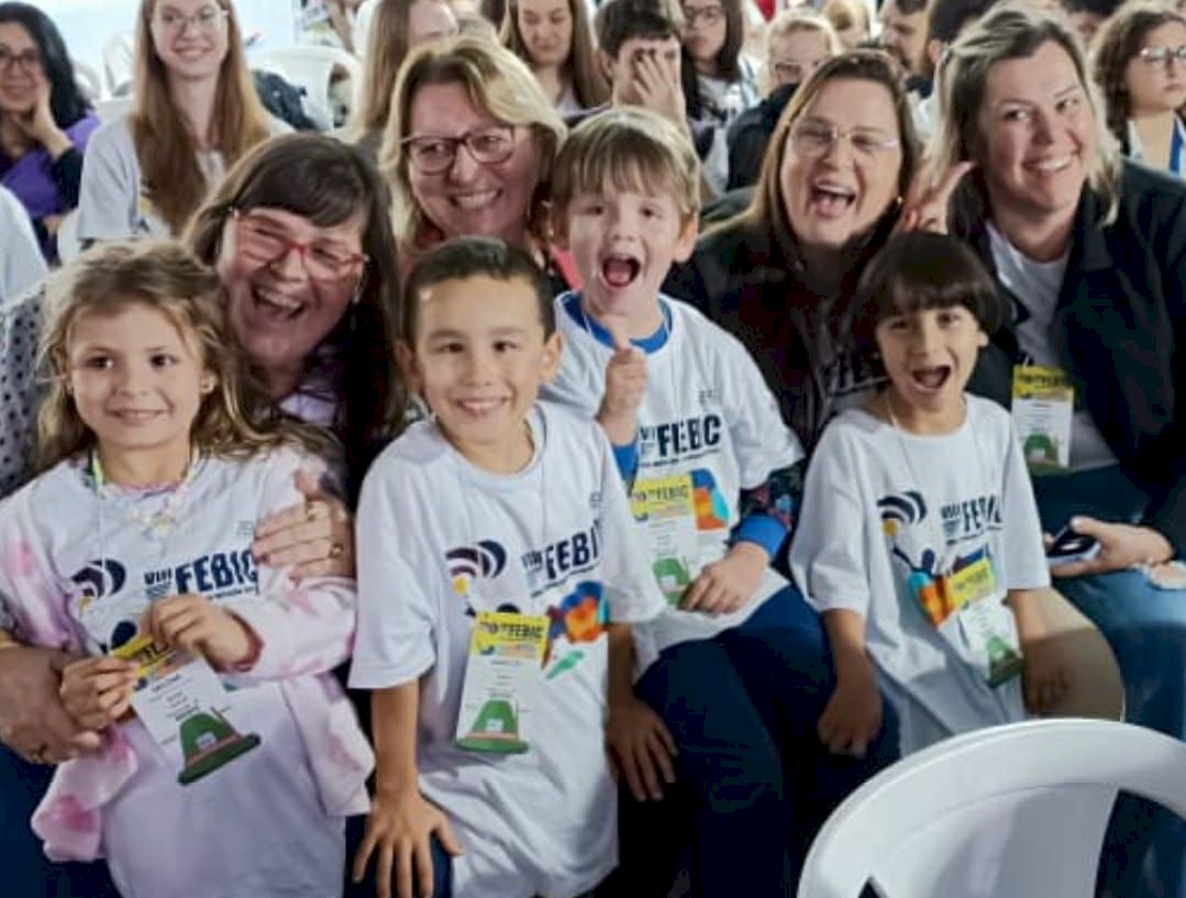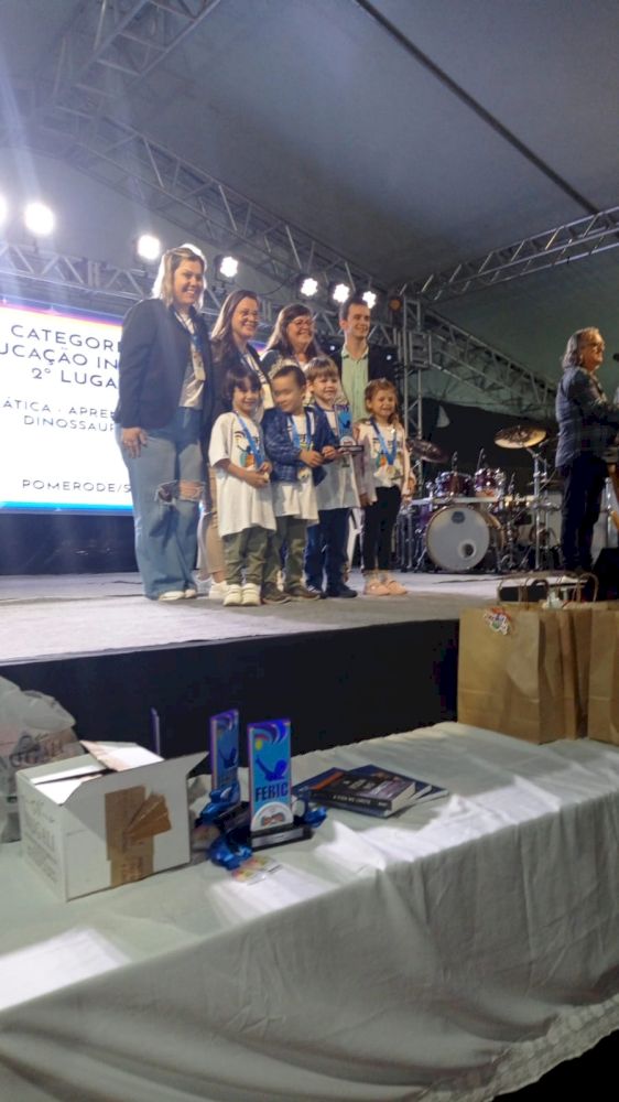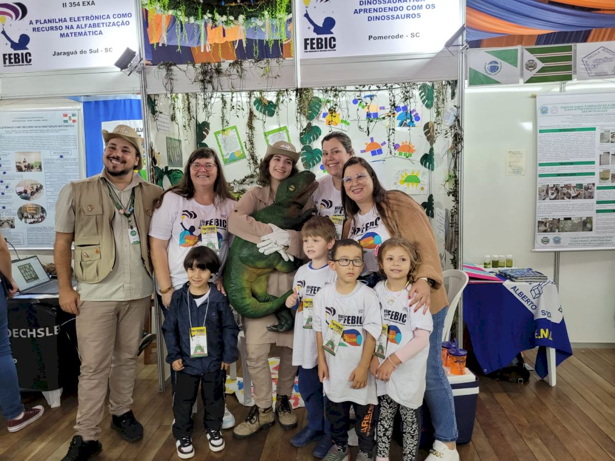 As professoras Maria Cecília (Cissa) e Micaella, juntamente com nossas crianças do CEI: Marcos, Vinícius, Théo e Milena participaram da FEBIC com o trabalho DINOSSAURÁTICA: APRENDENDO COM OS DINOSSAUROS, onde foram contemplados com uma credencial para participar em Belém do Pará no próximo ano.