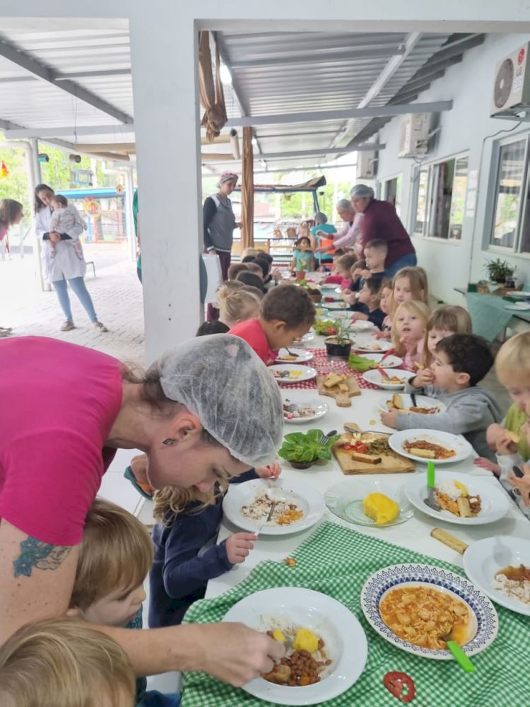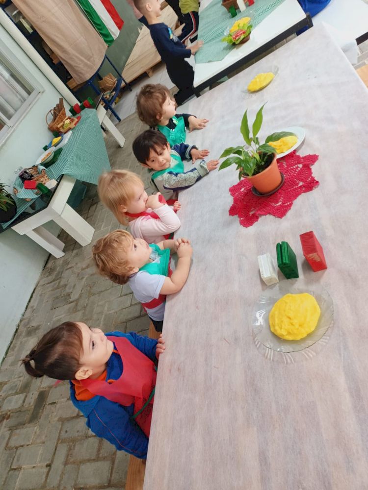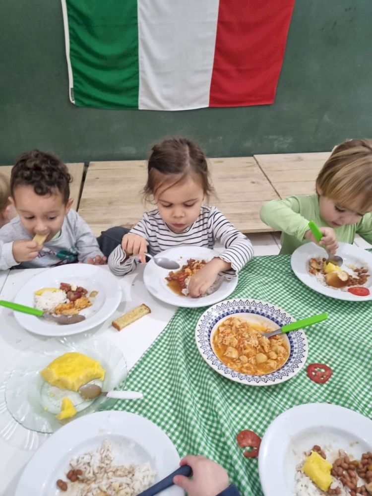 Nosso bairro é muito privilegiado por estar imerso por diversas culturas, dentre elas a cultura Italiana. Nossa Auxiliar de Serviços Gerais (Wanderleia) explicou para as crianças o nome de todos as alimentos em italiano e puderam também aprender com a Nona Naima- Avó de Joaquim Luis Caetano muitas brincadeiras de sua época de infância, assim como fazer uma deliciosa polenta italiana.