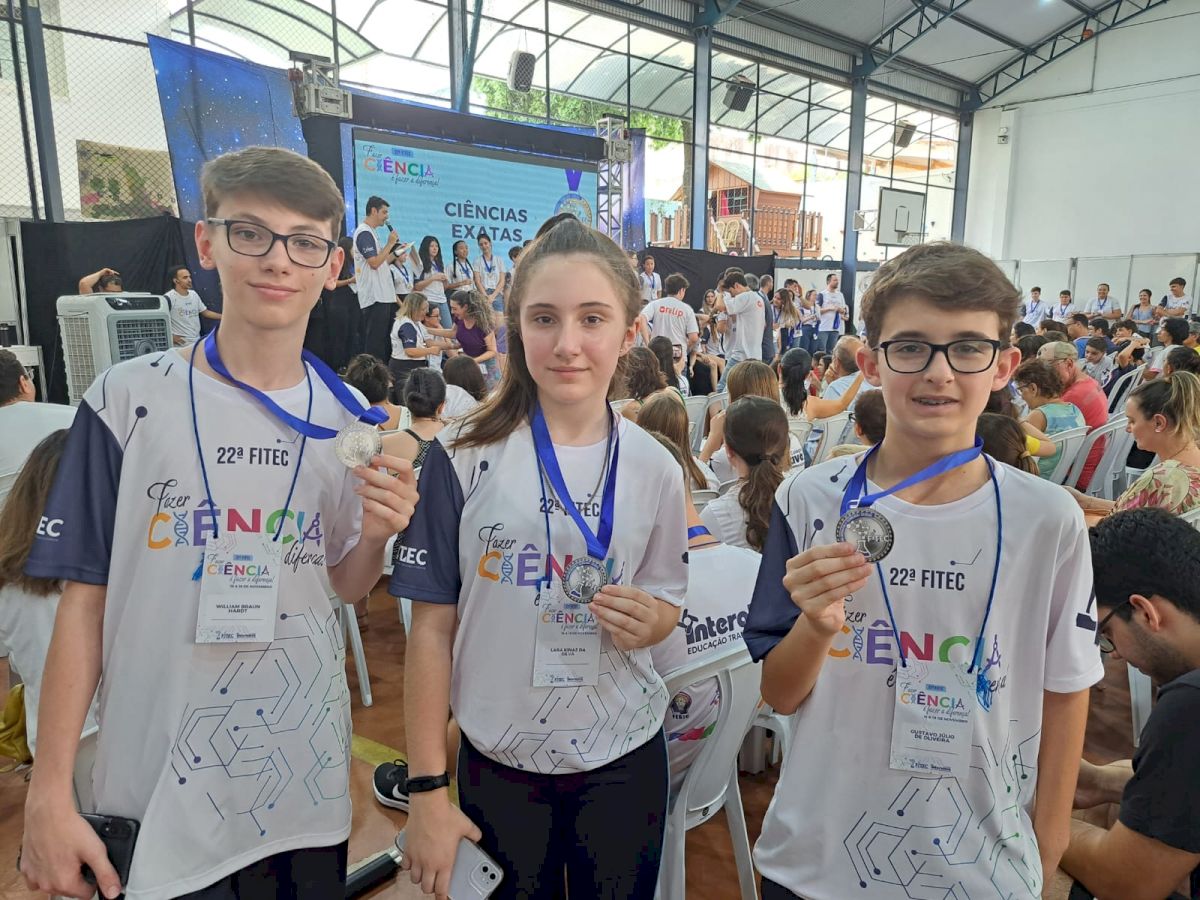 Os alunos Gustavo, Lara e William, da Escola Dr. Amadeu da Luz, apresentaram o Projeto “Gás natural: fonte de energia necessária X arma geopolítica moderna” e conquistaram a medalha de prata na categoria Ciências Sociais. Já os alunos da Escola Prof. Vidal Ferreira, Felipe, Adrian e Nathanael, participaram com o Projeto “Minecraft na escola” e receberam a medalha de bronze na categoria Engenharia.