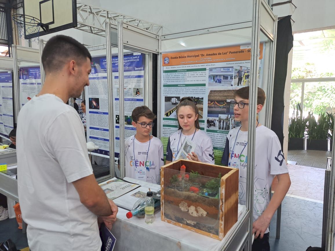 Entre os dias 16 e 18 de novembro, alunos da Escola Dr. Amadeu da Luz e da Escola Prof. Vidal Ferreira representaram Pomerode na 22ª Feira Interativa de Tecnologia e Ciência (FITEC), em Londrina, no interior do Paraná, e foram destaques.