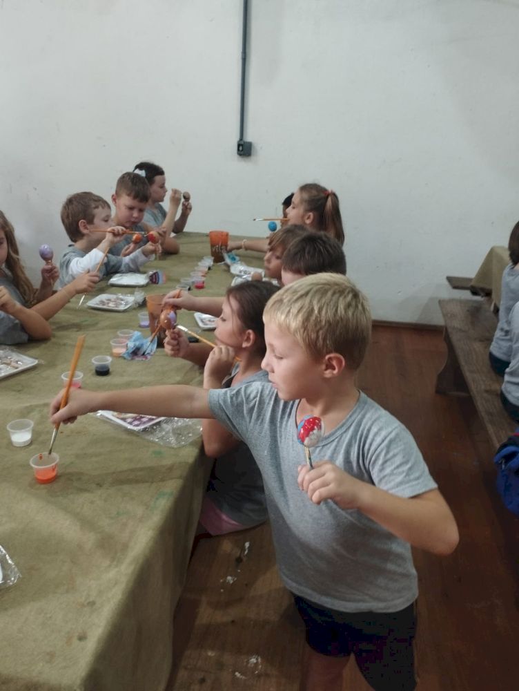 As crianças puderam participar das oficinas de pintura de casquinhas e de bolachas, como forma de manter viva a cultura de nossa cidade.
