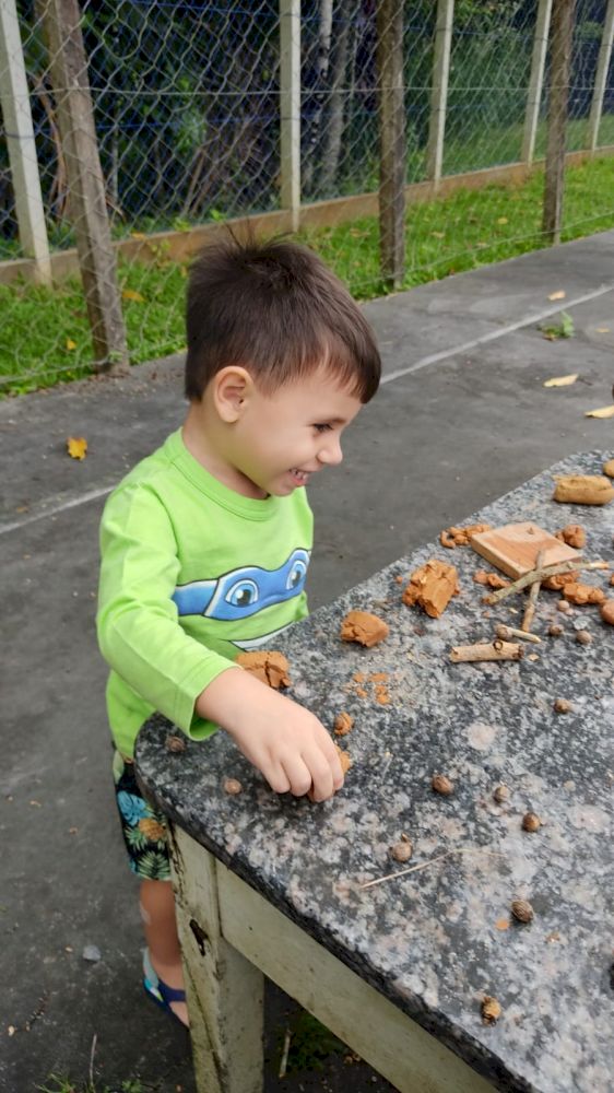 Quando falamos na relação criança e natureza, falamos de interações simples com possibilidades ampliadas e reais, onde a criança é autônoma no brincar e fortalece suas crenças para tomada de atitude em relação a sua criação artística.