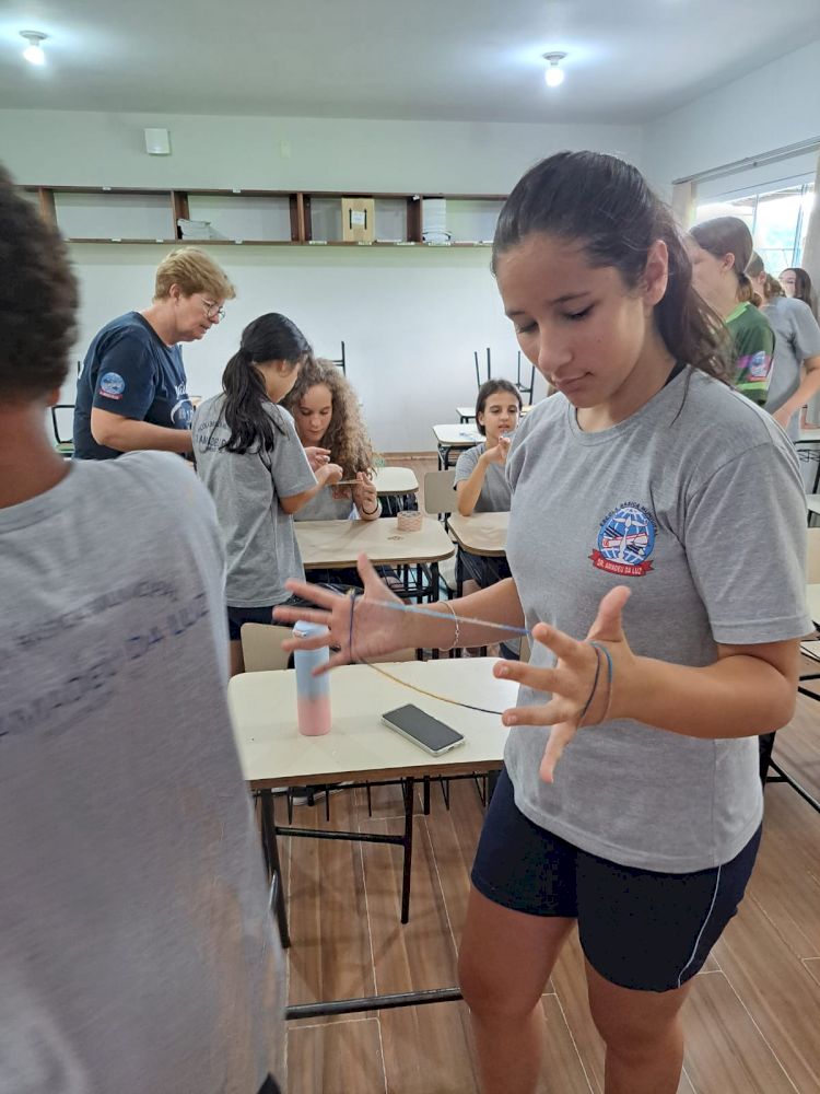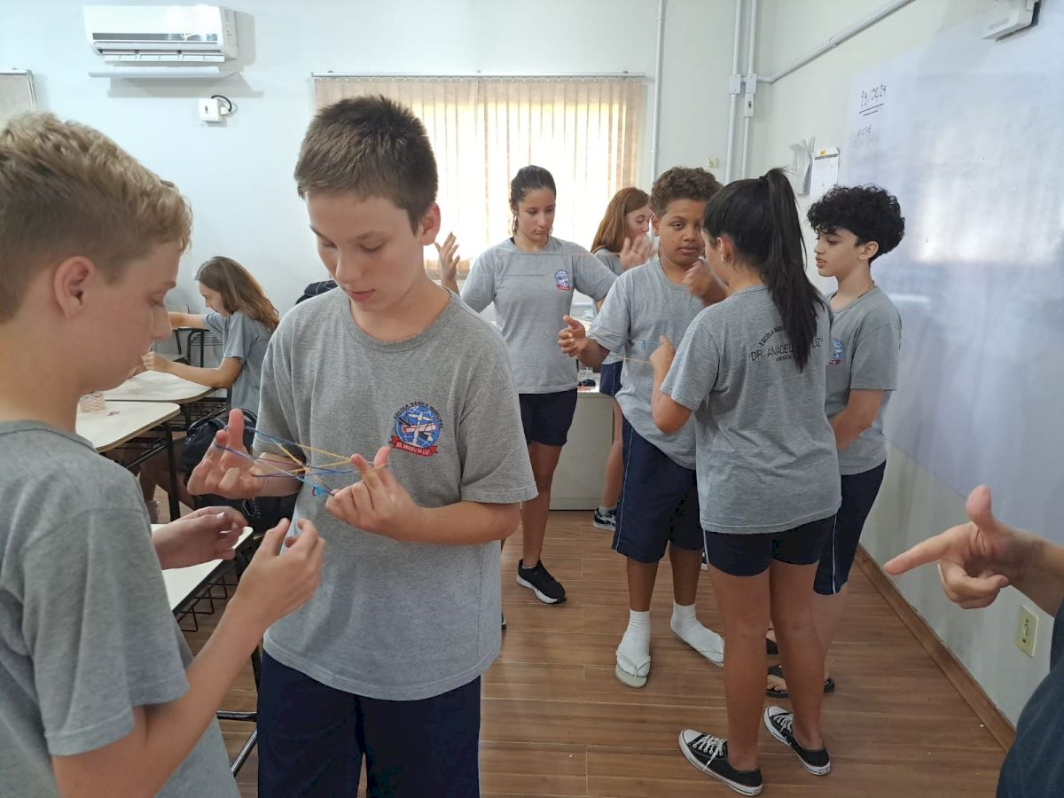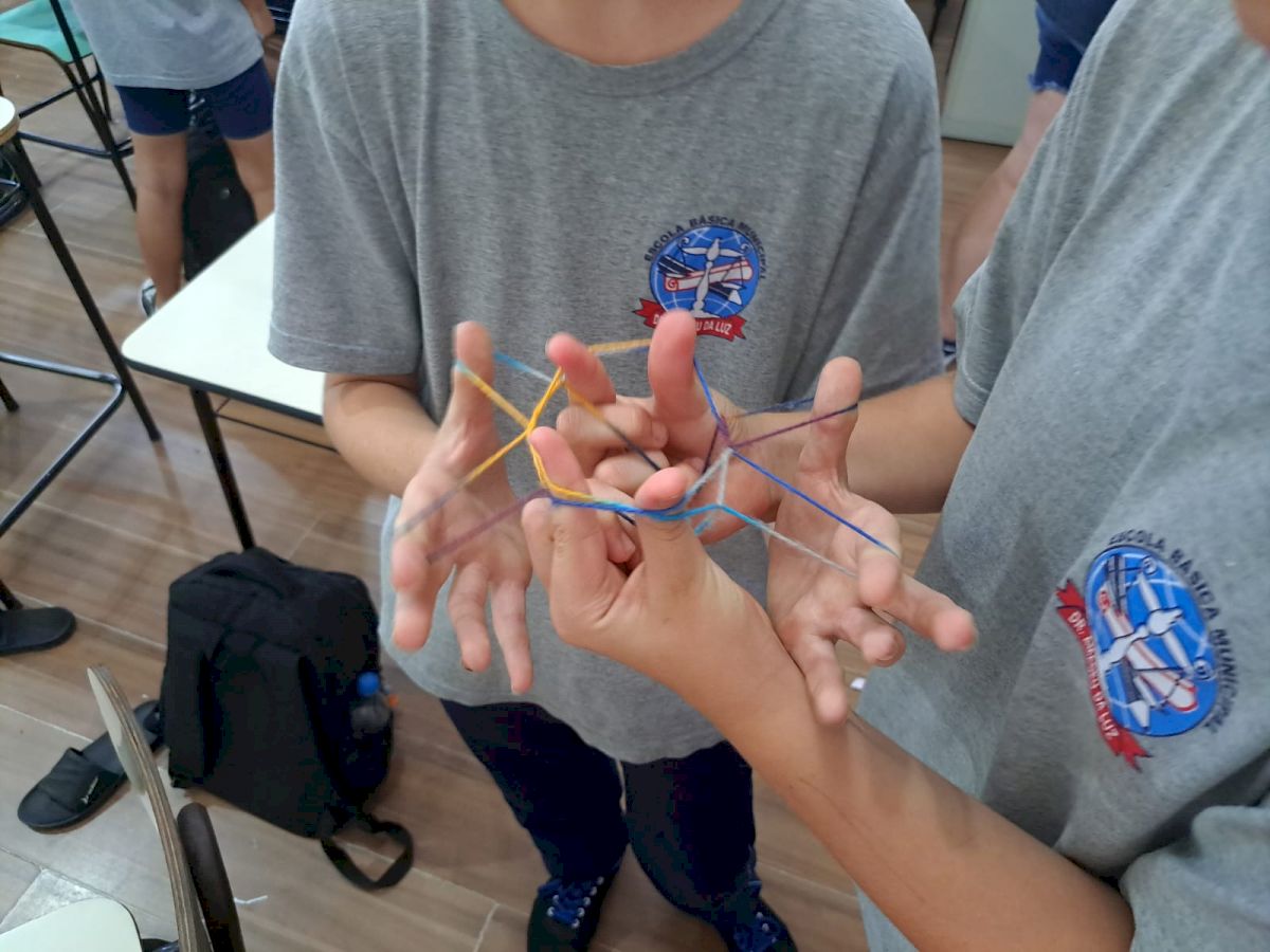 Durante as aulas, os alunos puderam vivenciar como eram algumas destas brincadeiras como “Gummitwist” ou elástico de pular, e “Fadenspiel” ou “Fandenspielen”, conhecidas no Brasil como cama de gato em duas versões, com o intuito de trabalhar a memorização e o trabalho em equipe, pois precisou da colaboração de vários alunos para que a brincadeira ocorresse.