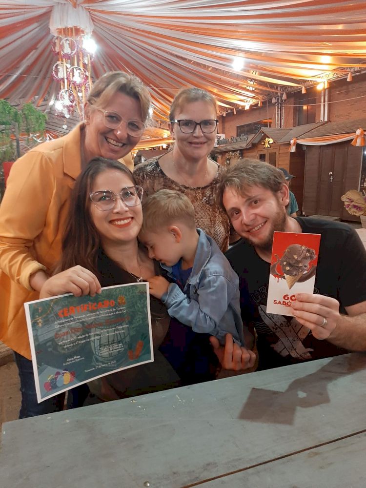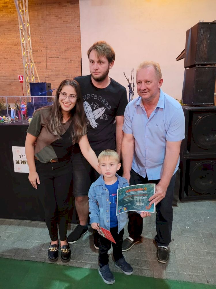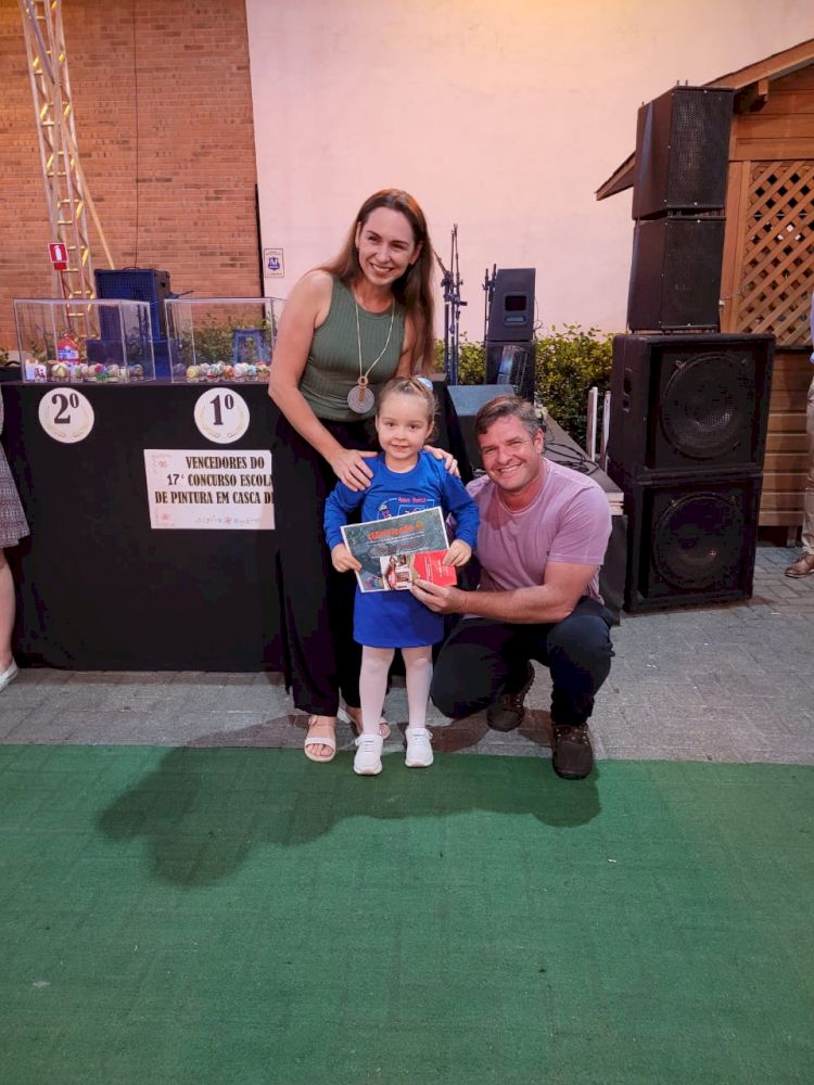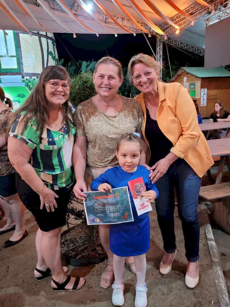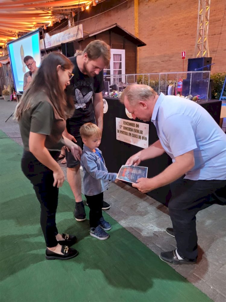 Clara Liz e Luan foram homenageados durante a cerimônia de premiação do 17º Concurso de Casquinhas de Ovos que ocorreu no palco da Osterfest, no qual cada um recebeu certificado e um vale-prêmio.