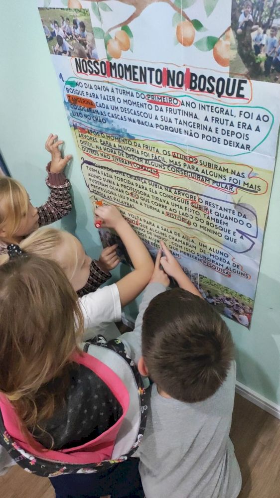 No dia subsequente, a turma elaborou um texto narrando esse momento. A partir desse relato, foram realizadas atividades de alfabetização de forma coletiva e individual. Trata-se de uma atividade simples, porém, sem dúvida, enriquecedora, que promoveu a aquisição de conhecimentos e habilidades, deixando as crianças extremamente satisfeitas.