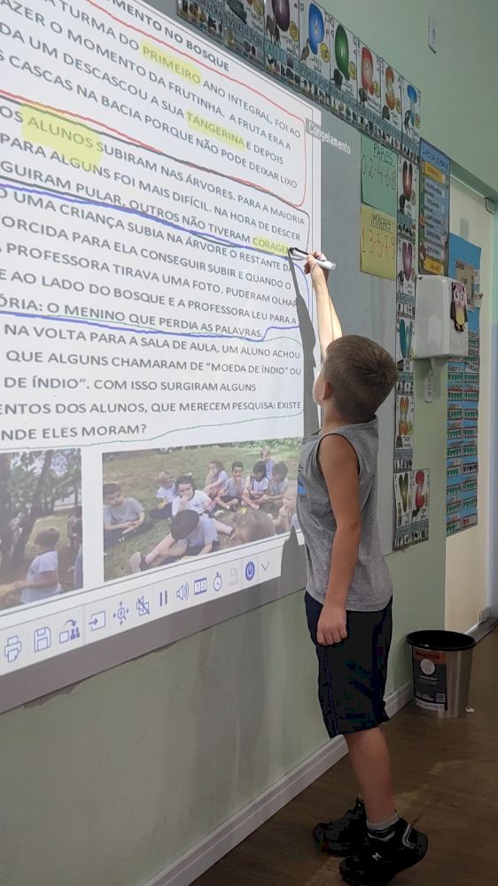 A professora também utilizou o momento para realizar uma leitura compartilhada, apresentando à turma a história "O Menino que Perdia as Palavras".