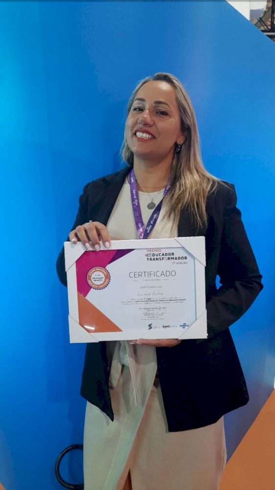Representando Pomerode, a Professora Luciana Lisboa, da EEBM Profª Noemi Vieira de Campos Schroeder, recebeu o segundo lugar na categoria Educação Infantil, da etapa nacional da 2ª edição do Prêmio Educador Transformador.