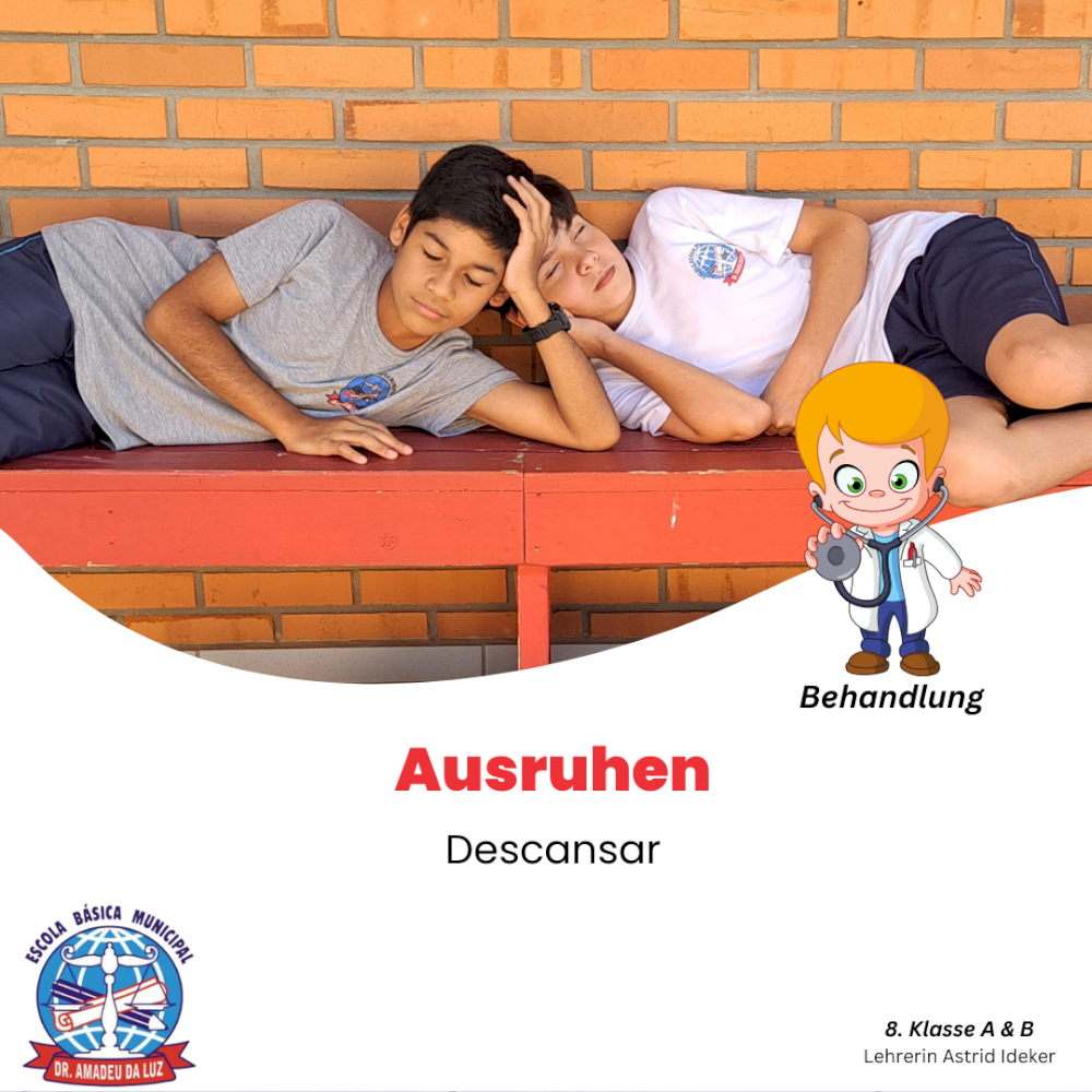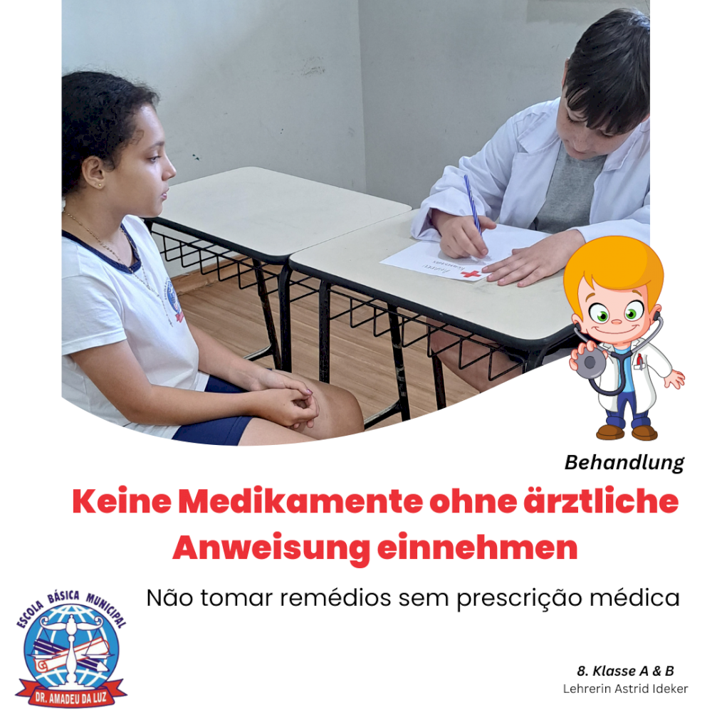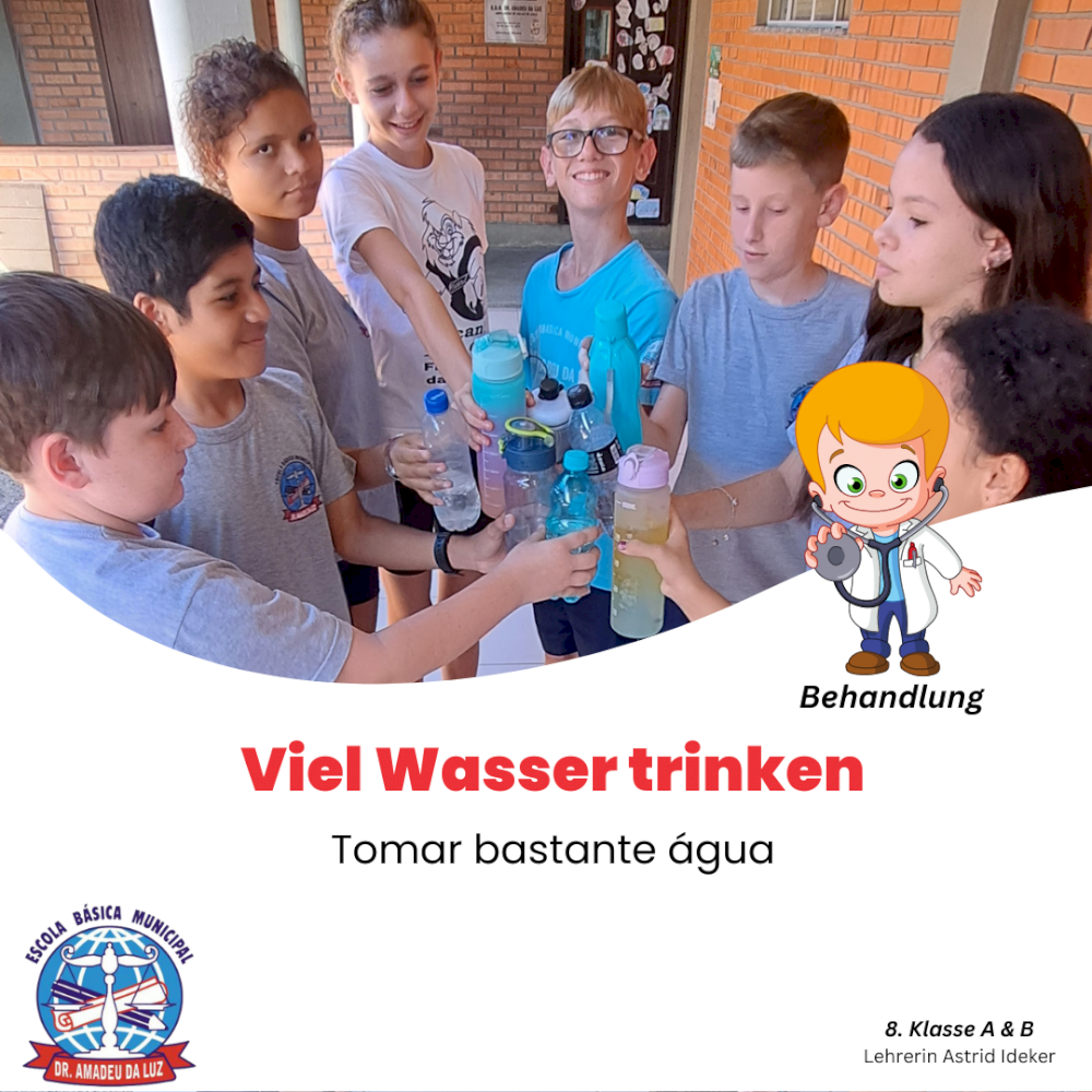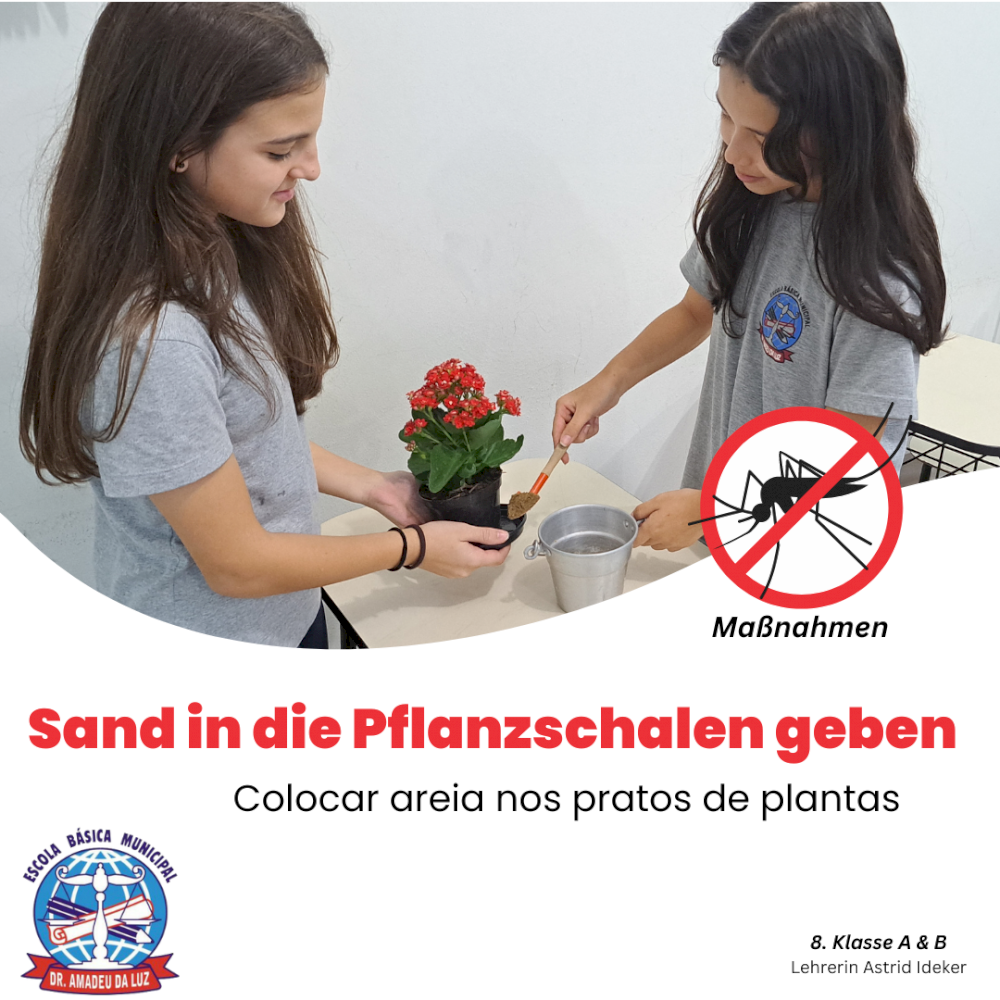 A professora do ensino bilíngue, Astrid Ideker, realizou uma série de atividades com os alunos, em várias áreas do conhecimento estudadas, todas em alemão, com o objetivo de conscientizar os estudantes sobre a dengue.