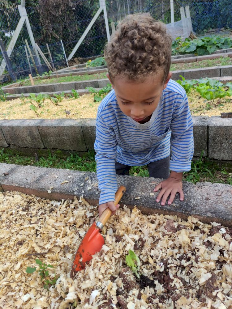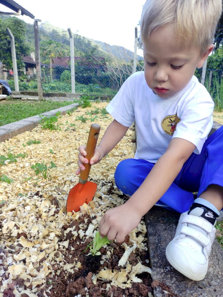 Vivenciar os processos é imprescindível nesta faixa etária e incentivar o consumo consciente também, ofertando uma variedade de cores no prato e uma alimentação saudável desde cedo.