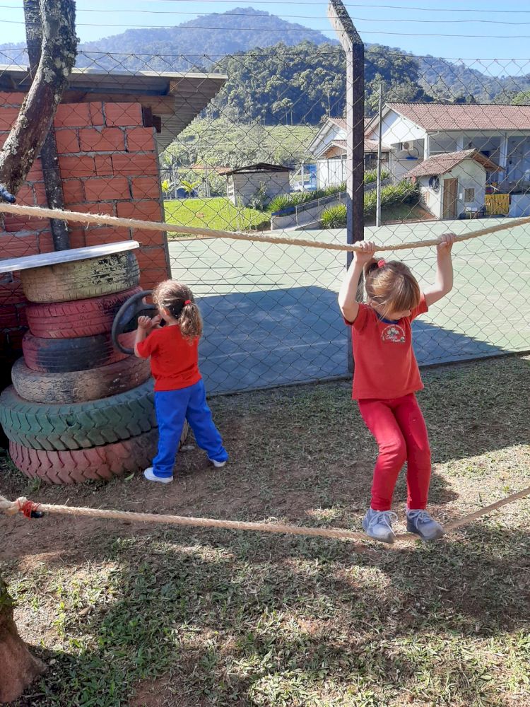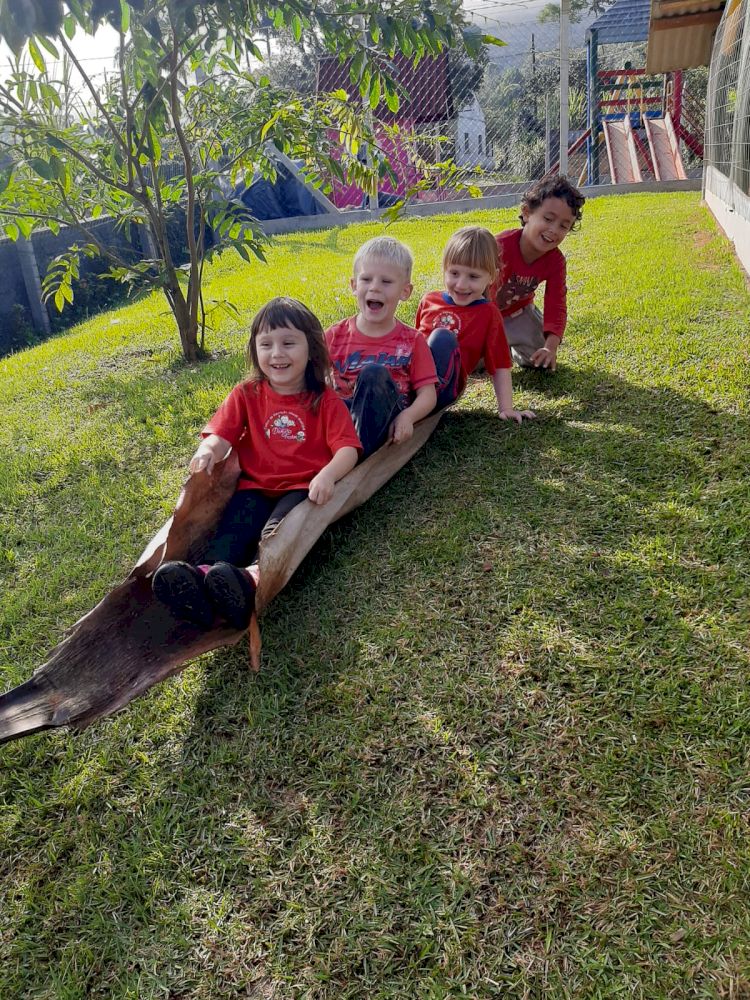 Esses momentos ao ar livre não apenas enriquecem a jornada das crianças, mas como facilita a socialização, a empatia, o cuidado com o outro, além de ampliar os conceitos e as vivências de cada um. Assim, esse brincar se transformou em um ato de carinho e colaboração, arrancando suspiro e gargalhadas das crianças.