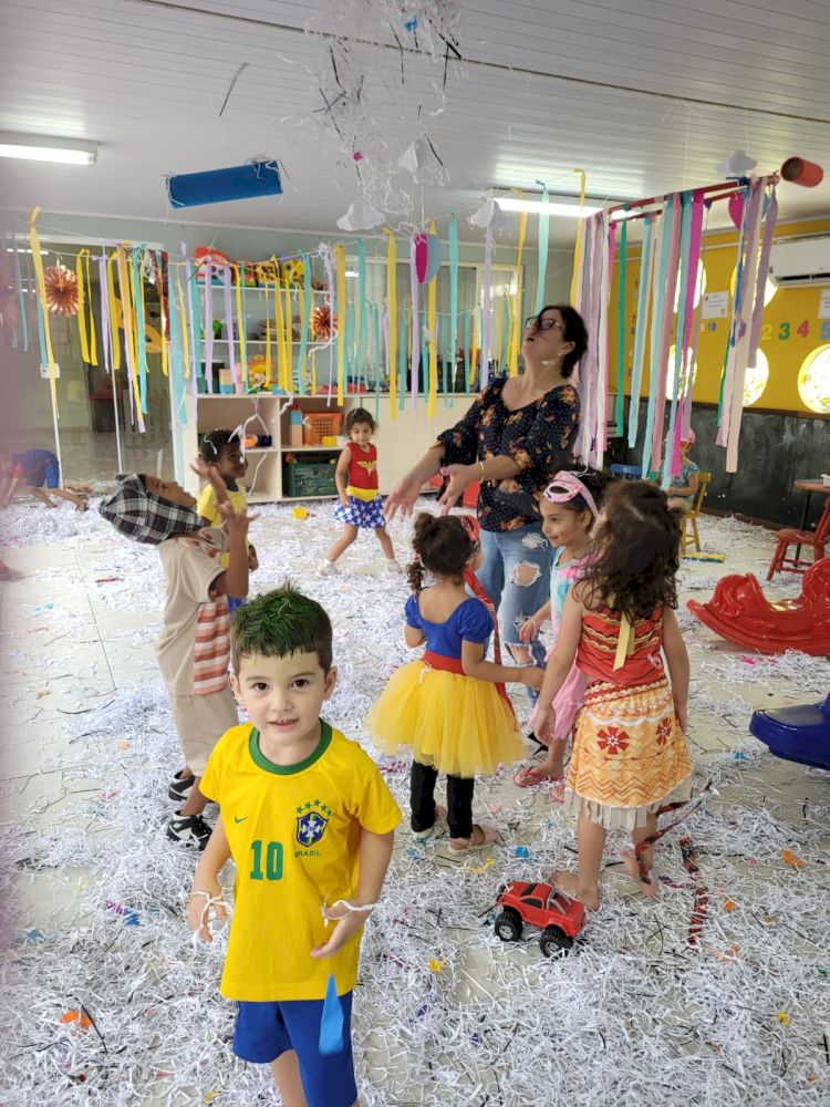 O convite se estendeu a todas as turmas e funcionários da unidade que com muita alegria aproveitaram esse momento cultural. As crianças enriqueceram esse dia, utilizando fantasias, adereços e largos sorrisos. Um dia repleto de trocas significativas e afetivas com nossas crianças, que puderam conhecer um pouquinho dessa tradicional celebração brasileira.