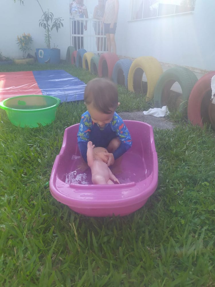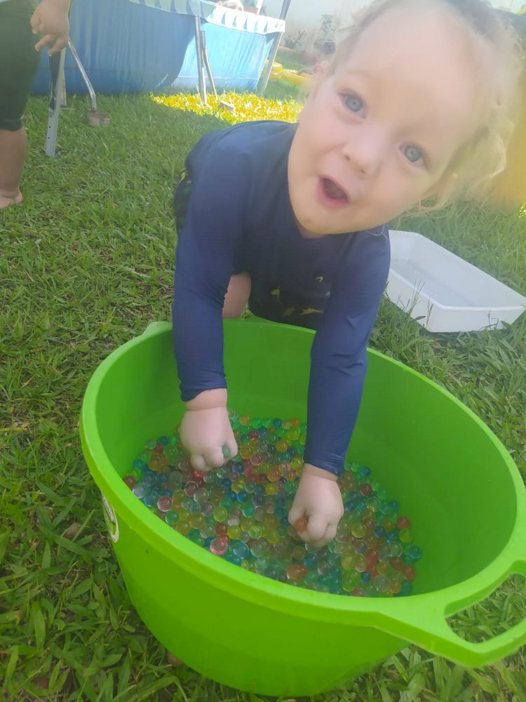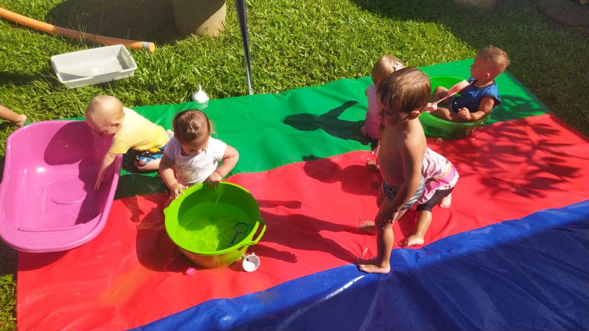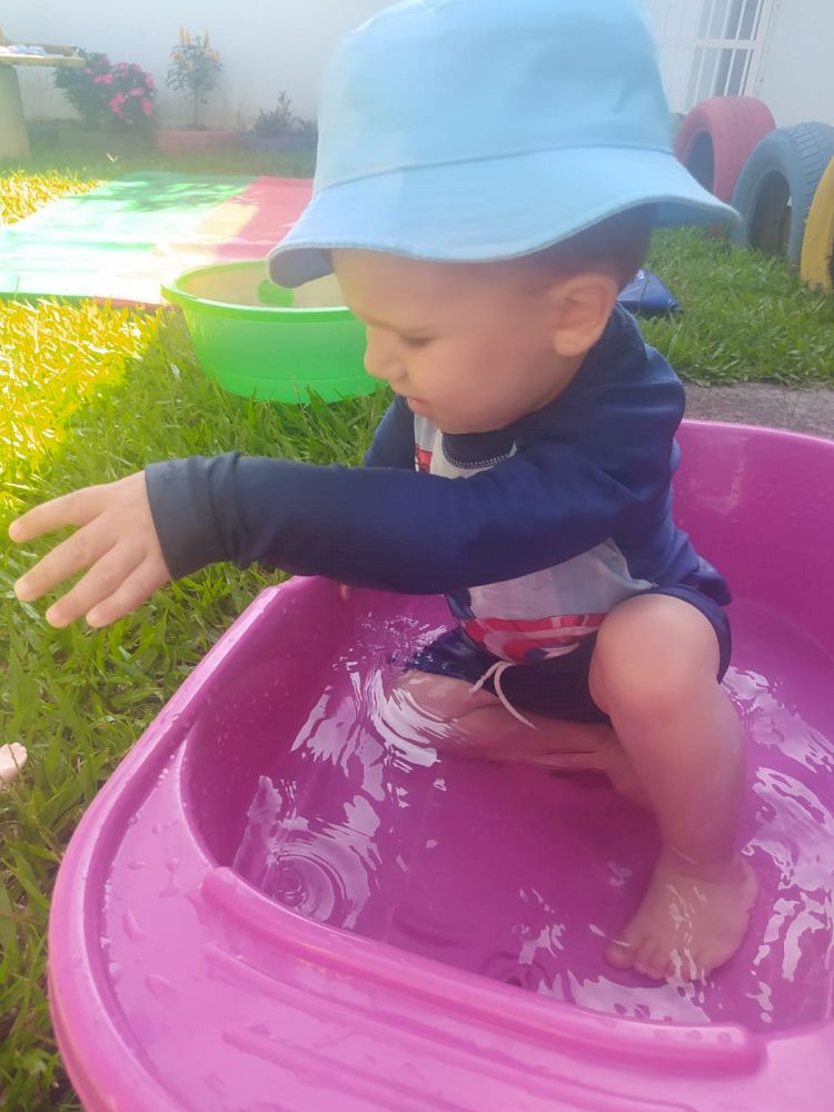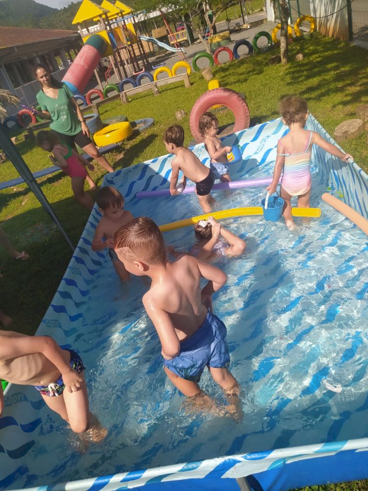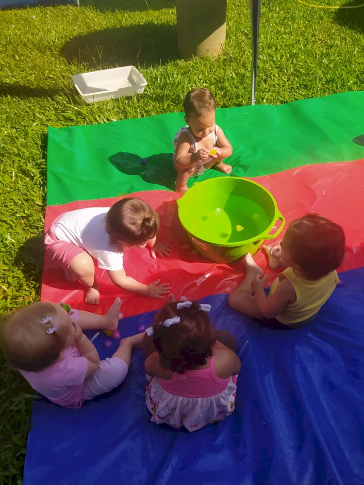 Em um ambiente preparado com piscinas, bacias, funis, colheres, potinhos, peneiras de diferentes tamanhos, onde as crianças puderam fazer o transporte, transferência, comparação organizar tamanhos e fazer todas as relações possíveis com os materiais oferecidos, as professoras do CEIM Profª Amália Gertrudes da Silva Anders planejaram um espaço ao ar livre, com várias opções de brincadeiras feitas com água, para que as crianças pudessem além de se refrescar, descobrir, investigar e ampliar as possibilidades de aprendizado.