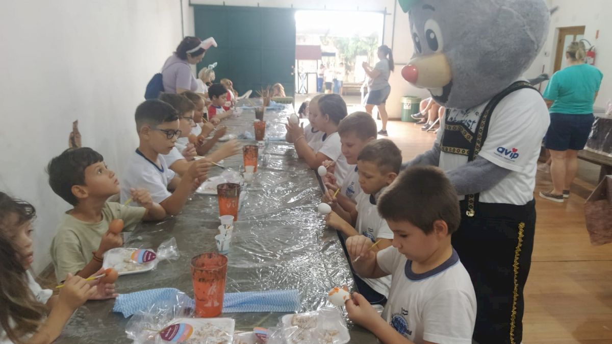 Entre essas tradições, os alunos participaram de uma oficina onde puderam decorar deliciosas bolachas de Páscoa, receita típica e que será material de estudos da turma. O alunos também participaram das pinturas de casquinhas de ovos.