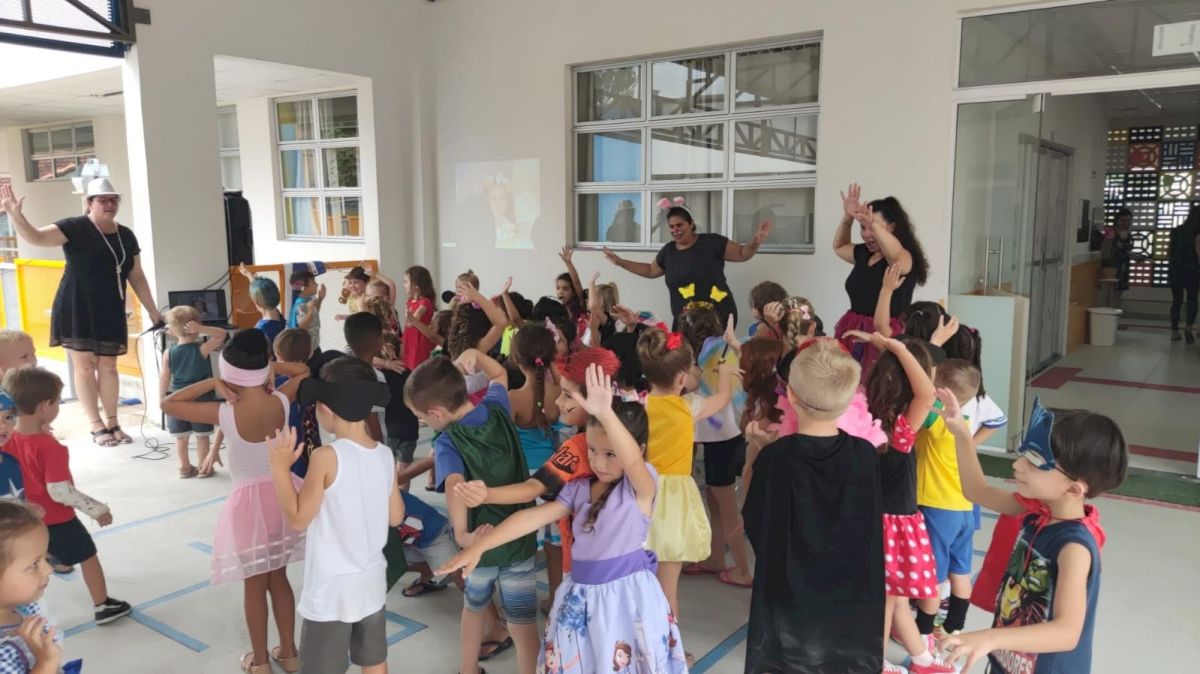 As crianças se divertem com os temas trazidos pelos colegas (fantasias, adereços...), e a apresentação cultural realizada pela turma responsável no mês é uma maneira natural de interação entre os pequenos, além do que, os ensaios e toda a preparação que a turma realiza durante o processo é de muita aprendizagem. No fim, as crianças trazem um espetáculo animado e com muita cultura, pois nossos projetos são voltados para o desenvolvimento da criança.