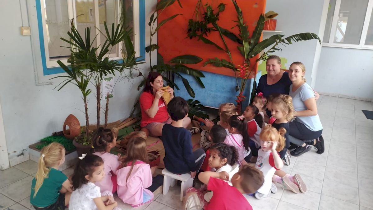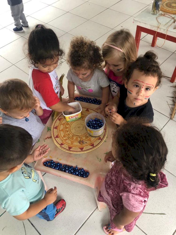 De forma lúdica e prazerosa as crianças tiveram o contato com a cultura dos povos indígenas em diferentes momentos de: contação de histórias e lendas; brincadeiras e brinquedos; artesanatos; confecção de instrumentos musicais; pintura facial e alimentação.