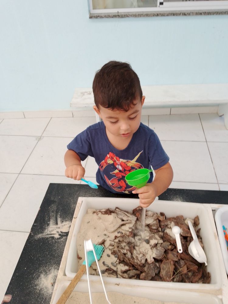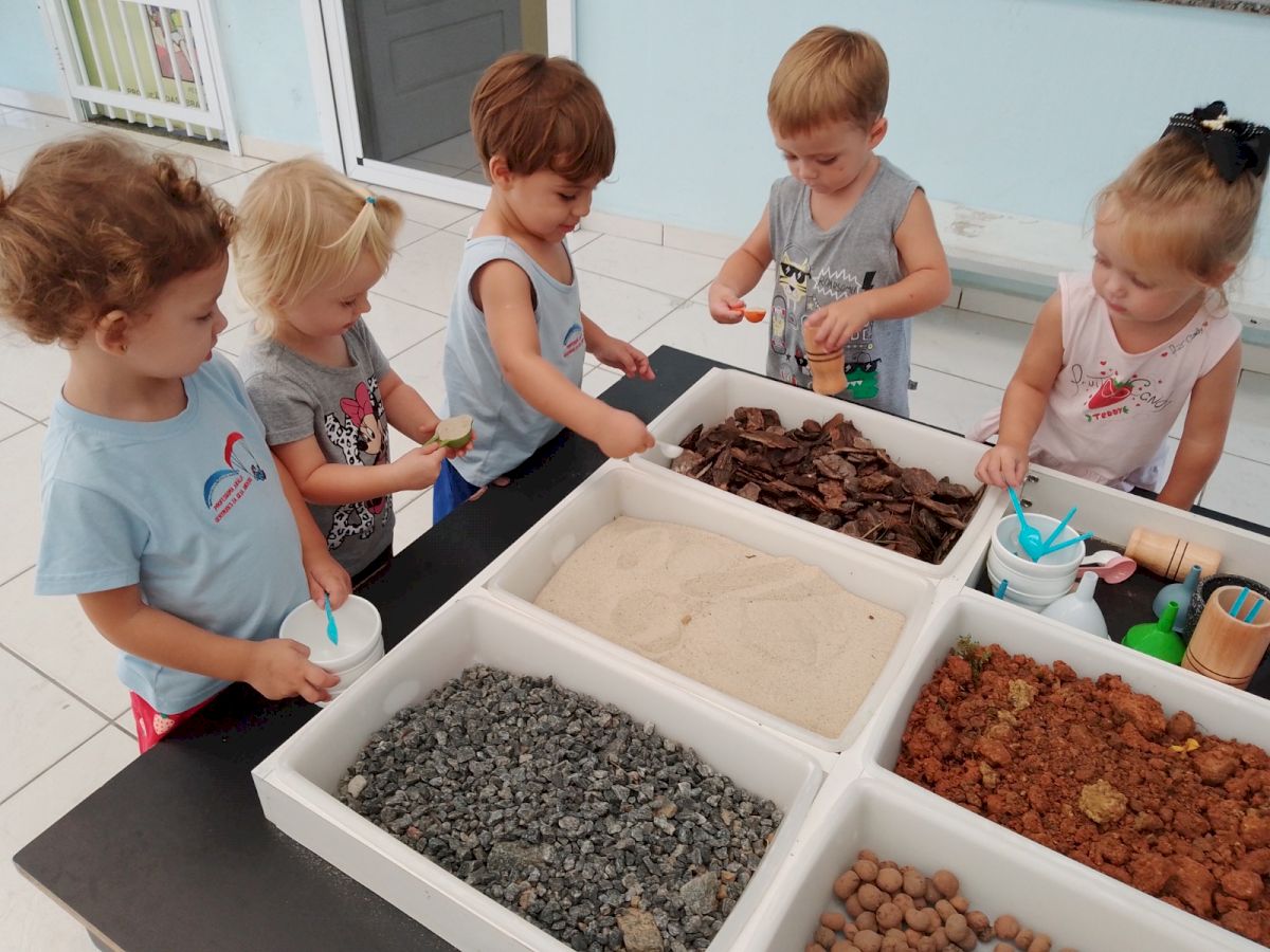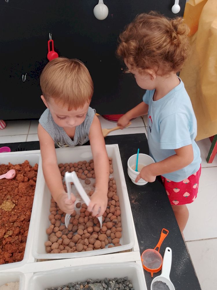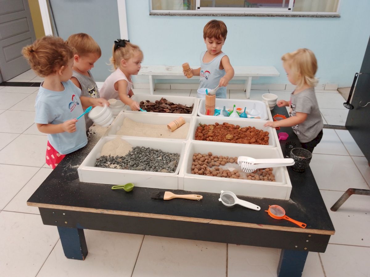 A mesa de Experimentação consiste em um momento de brincar e explorar materiais contáveis e não contáveis em um espaço de tempo que permite pesquisar e elaborar conceitos de aprendizagem. Caracteriza-se por uma proposta em que a criança descobre as coisas por “si mesma” Sendo assim, entende-se que o Brincar Heurístico é uma brincadeira de descobertas. Mas, descobrir o quê exatamente? A resposta para esta pergunta pertence às crianças… o interesse, as pesquisas, as hipóteses, partem delas e, através de suas ações são comprovadas. Elas é que apontam ao adulto, a partir da exploração e brincadeira nas sessões, o que desejam e buscam descobrir. As crianças podem explorar todos os elementos. Na brincadeira que as crianças interagem entre elas.