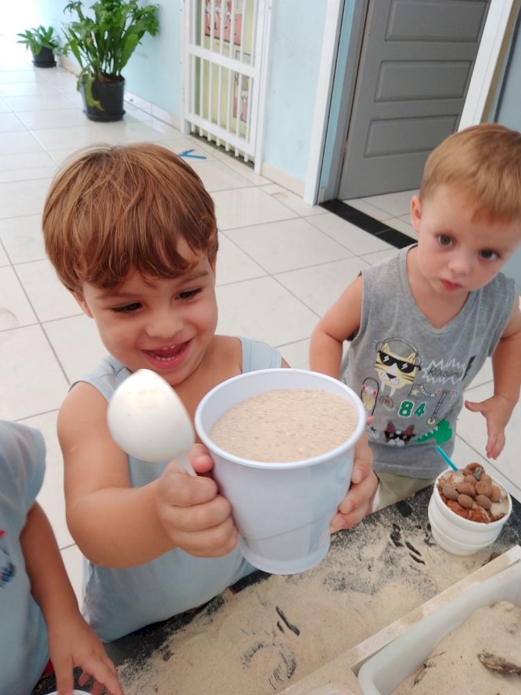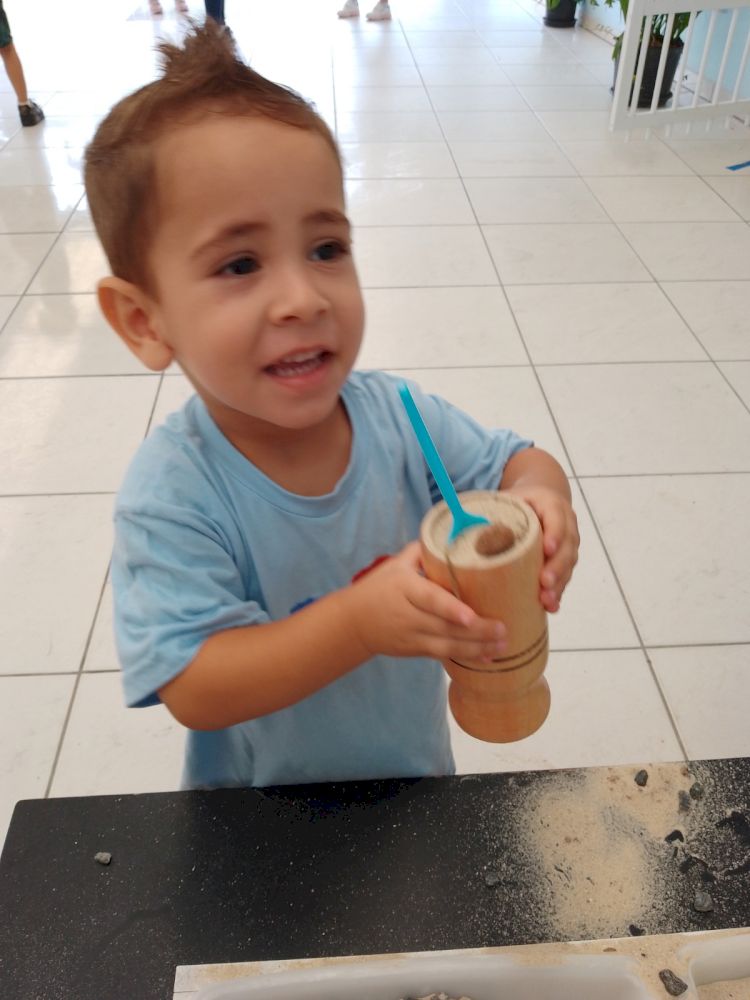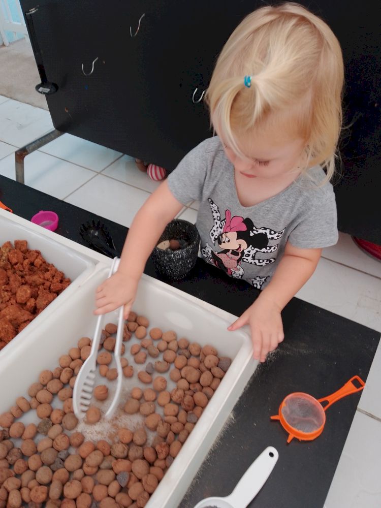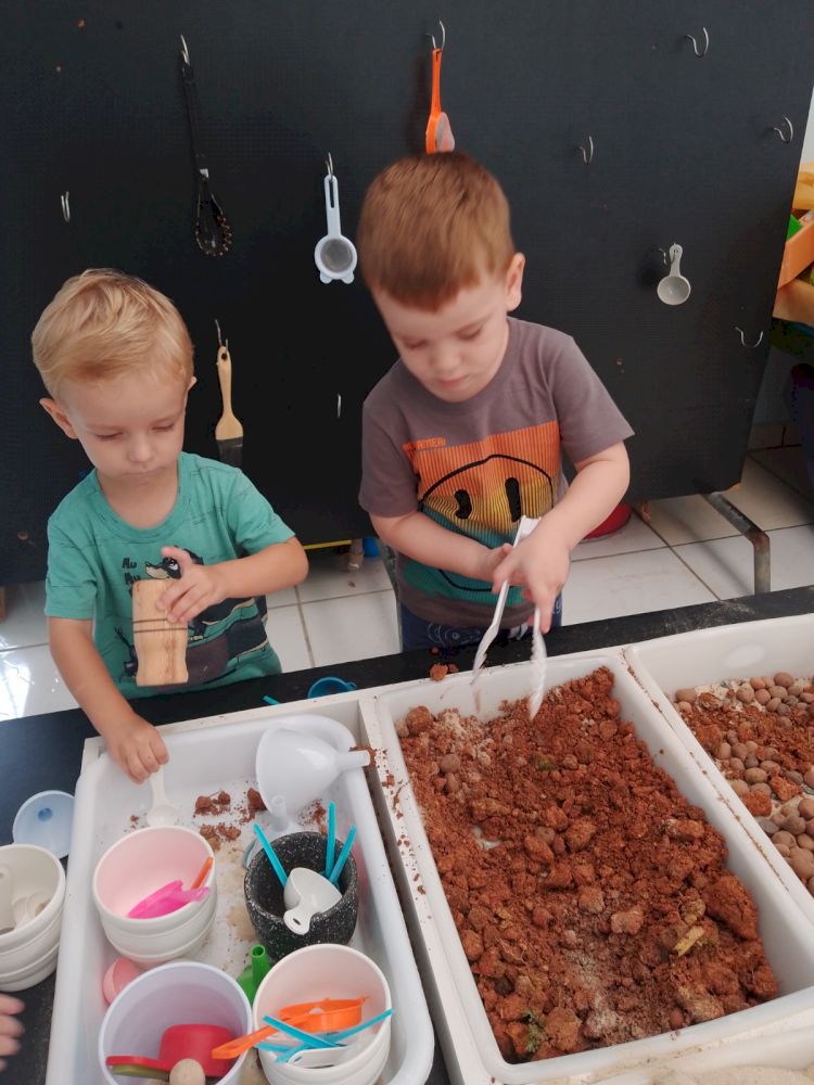 A mesa de Experimentação consiste em um momento de brincar e explorar materiais contáveis e não contáveis em um espaço de tempo que permite pesquisar e elaborar conceitos de aprendizagem. Caracteriza-se por uma proposta em que a criança descobre as coisas por “si mesma” Sendo assim, entende-se que o Brincar Heurístico é uma brincadeira de descobertas. Mas, descobrir o quê exatamente? A resposta para esta pergunta pertence às crianças… o interesse, as pesquisas, as hipóteses, partem delas e, através de suas ações são comprovadas. Elas é que apontam ao adulto, a partir da exploração e brincadeira nas sessões, o que desejam e buscam descobrir. As crianças podem explorar todos os elementos. Na brincadeira que as crianças interagem entre elas.
