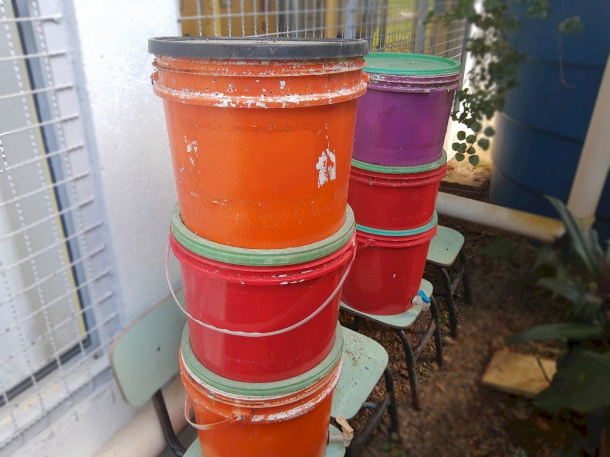 Na época foi observado na escola que durante a preparação da merenda escolar, produzia-se uma grande quantidade de resíduo orgânico, esse resíduo era destinado aos aterros sanitários ou enterrado/colocado sobre a horta escolar, gerando neste local o aparecimento de muitas moscas, principalmente nos meses mais quentes. Então surgiu uma pergunta: O que fazer com o excesso de resíduos orgânicos produzidos na escola? Uma solução para este problema foi a construção de composteiras domésticas, com baldes e minhocas californianas.