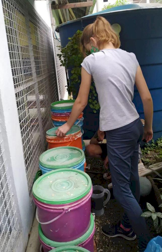 Ainda, parte do composto gerado pelo processo de compostagem é usado nos canteiros da escola e o líquido biofertilizante é usado para regar principalmente as orquídeas e bromélias que fazem parte do projeto Caminho das Epífitas.