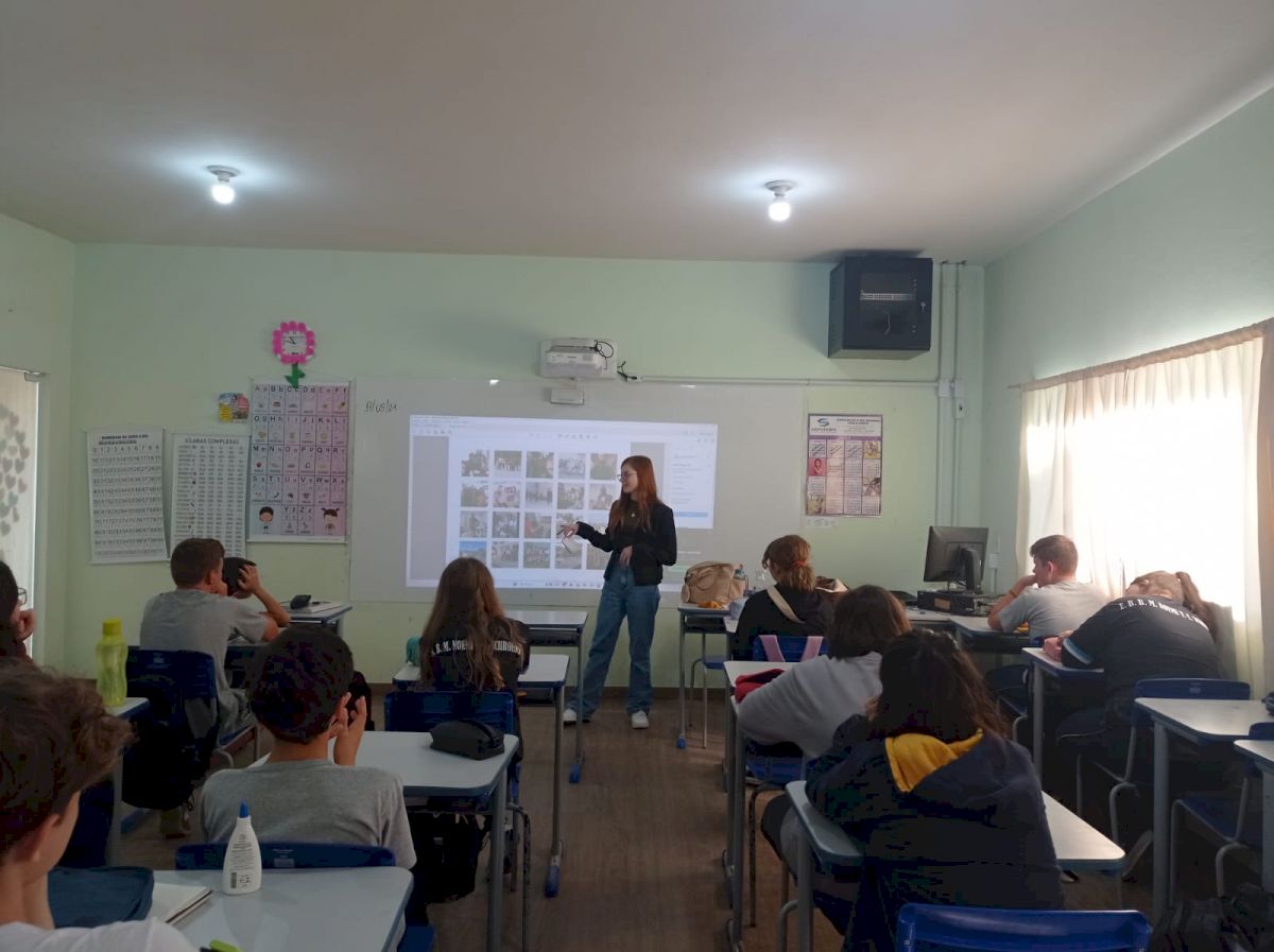 Sabrina é ex-aluna da escola. Além de trazer sua experiência dos seus estudos no ensino médio, pois ela estudou no Instituto Federal, também comentou da faculdade Psicologia onde está cursando o 9° semestre.