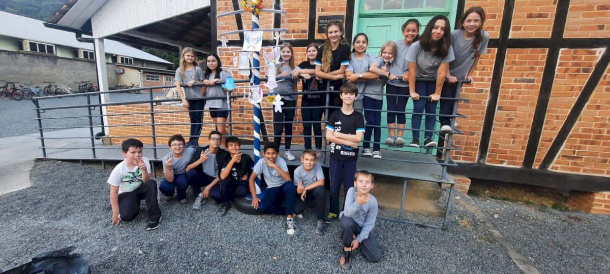 Durante o mês de maio os alunos do bilíngue na disciplina de Kunst estão rememorando a antiga tradição da Maibaum (árvore de maio).