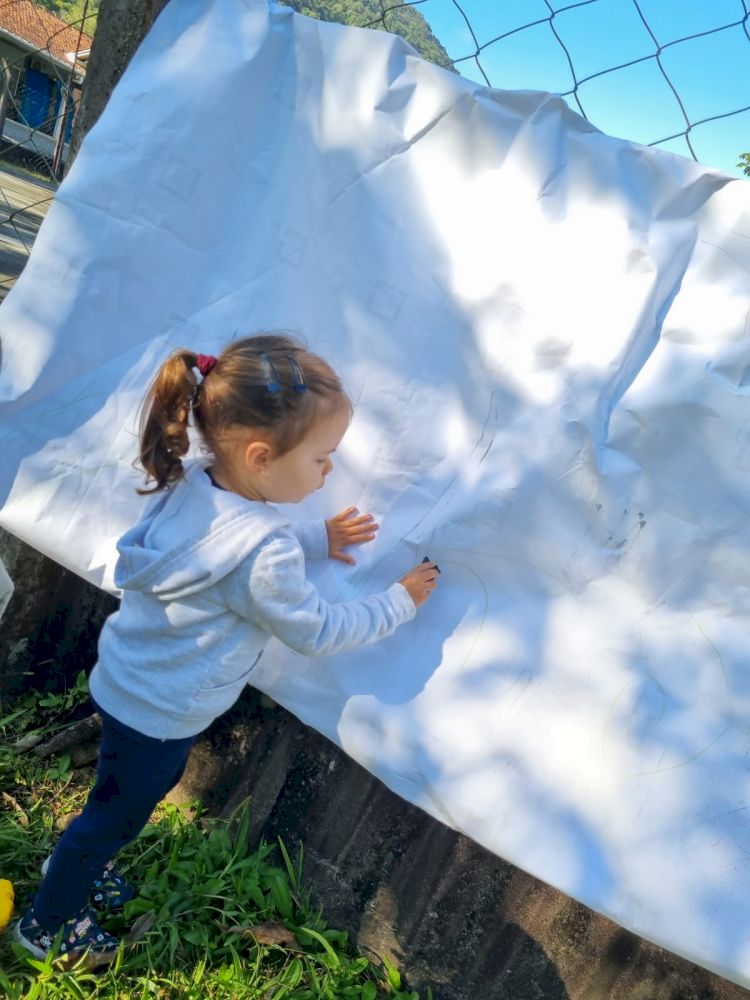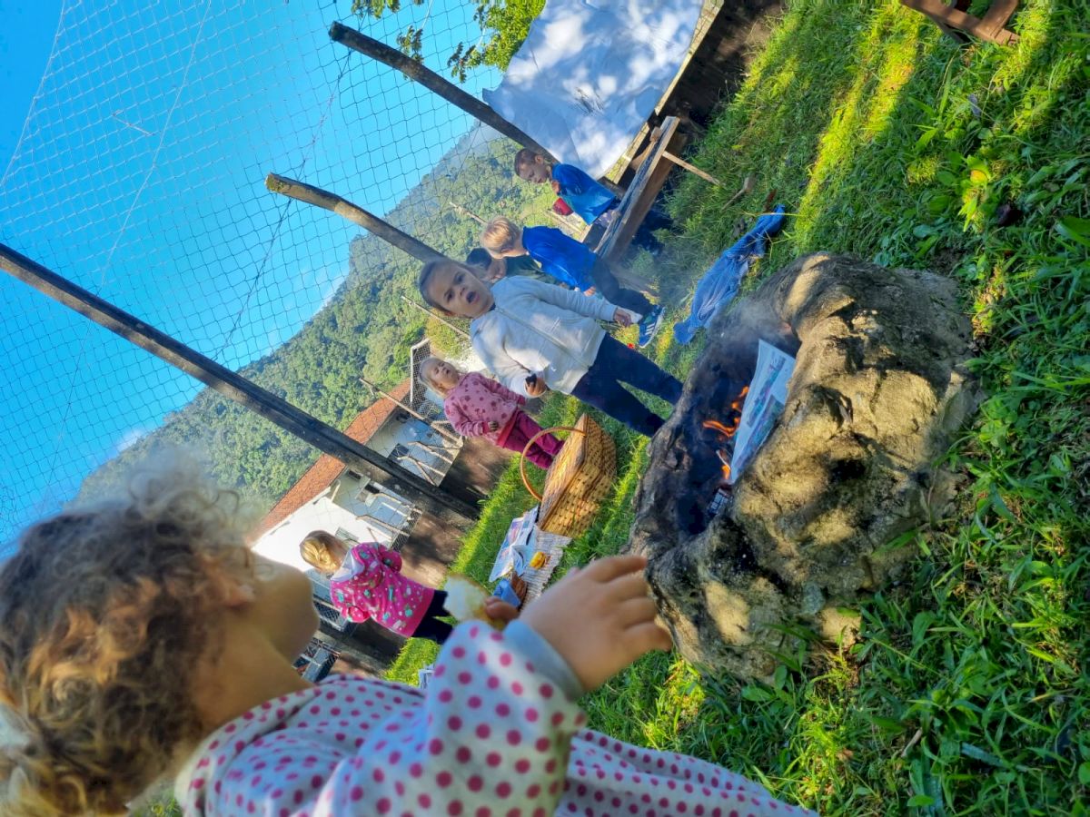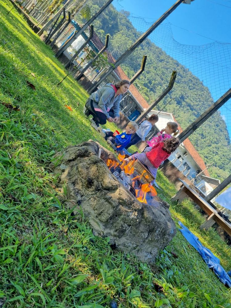 As crianças da Creche 2B tiveram a oportunidade de acompanhar o processo de fazer fogo no espaço que temos para isso na creche, fizeram um piquenique perto da fogueira e ainda puderam desenhar utilizando carvão, que foi a matéria prima utilizada para acender o fogo.
